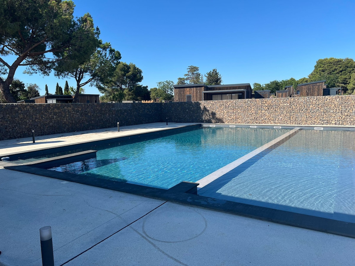 Maison chalet bois entre terre et mer Pézenas.