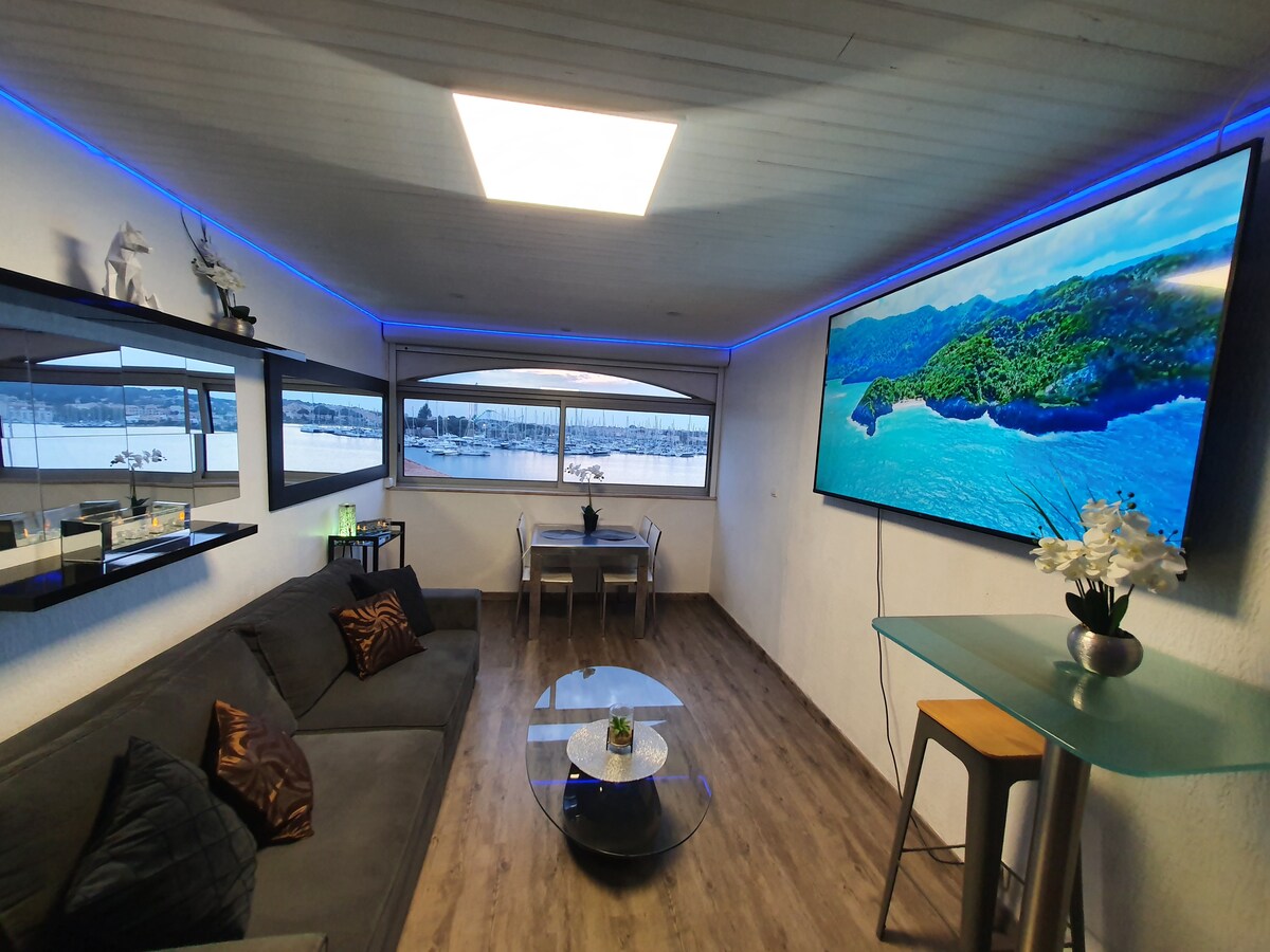 studio de 25m2 Au rez de chaussée. vue à couper le souffle. Emplacement unique à Mèze" côté mer, côté voiles" en Front de mer immédiat (à 3 mètres de l'eau)tout équipé,Lave-linge, lave vaisselle, four micro ondes , frigo , cellier, climatisation, chauffage,TV grand écran plat, WIFI offerte mezzanine (H:1m20) avec lit en 140, rangements placards muraux, canapé convertible en 140 ( rapido Neuf)terrasse fleurie A PIEDS :A 5mins de tous les commerces et du port, plage est à une 10aine de mètres
