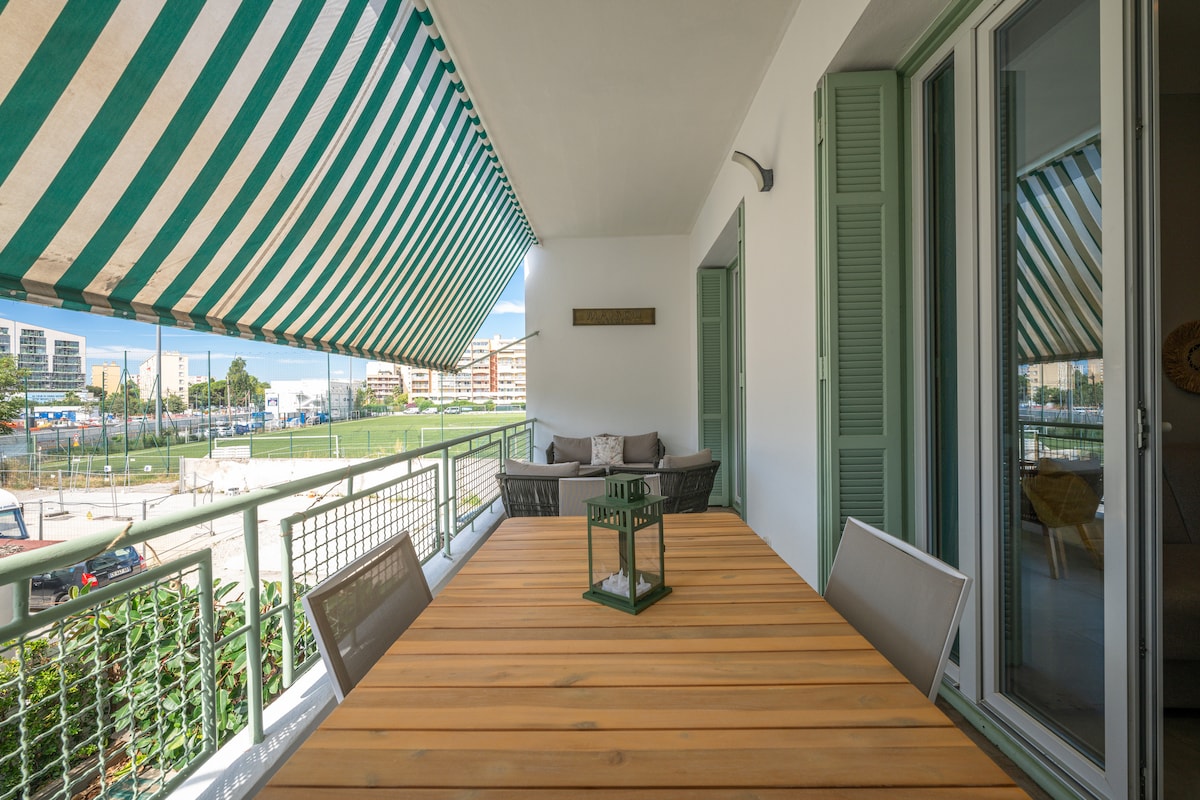 3 pièces idéalement exposé sud/sud-ouest offrant tout le confort nécessaire pour un séjour agréable pour 2 personnes. Il dispose d'un parking privé et d'un jardin avec loggia ensoleillée pour profiter du beau temps. La plage et le centre commercial CAP3000 sont respectivement à 15 minutes à pied et à 5 minutes en voiture. L'aéroport et le Stade sont accessibles en 6 et 10 minutes en voiture ; Entièrement équipé, y compris une connexion Internet fibre optique et procède de toutes les commodités.