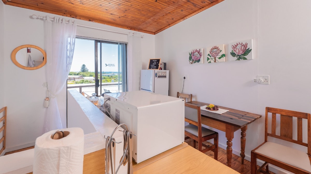 Bel appartement avec entrée privée et une magnifique vue sur la mer de la plus longue plage s'étendant jusqu'à Arniston. Découvrez le lever du soleil sur l'océan dans le confort de votre lit ou le coucher du soleil depuis la terrasse. 2 chambres, dont l'une avec un lit Queen Size et l'autre avec un lit simple. Terrasse extérieure où vous pourrez vous détendre. Kitchenette bien équipée, coin repas, DSTV et Wi-Fi gratuit. Installations de barbecue disponibles. À distance de marche de la plage, du port et des commerces.