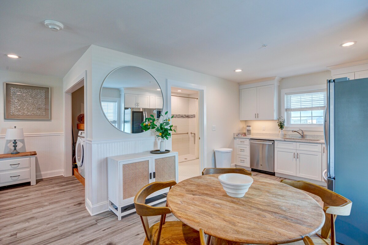 Cette suite d'une chambre sur le thème des huîtres est située au 1er étage et dispose d'un lit queen size, de 2 téléviseurs intelligents, d'un canapé convertible queen size et d'un coin repas. La cuisine partielle dispose d'un mini-réfrigérateur, d'un micro-ondes et d'un Keurig. Une terrasse arrière donne sur le jardin de l'arrière-cour. Cette suite boutique auberge acceptant les animaux de compagnie est située au centre en face de la Carolina Beach Boardwalk et à proximité de tout, du centre-ville et à environ 1050 pieds de l'océan/5 minutes à pied. Comprend une chaise de plage/parasol pour les mois d'été !