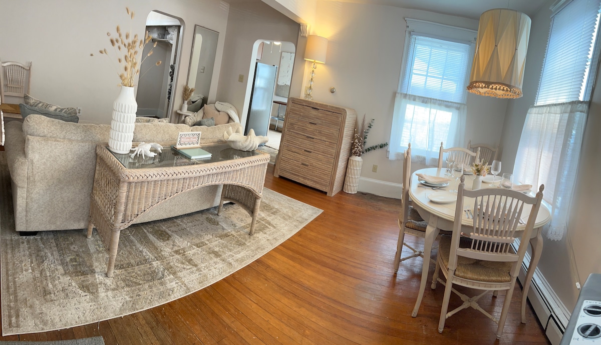 The Daze Away est une escapade relaxante parfaite pour les couples, amis, familles et voyageurs en solo ! 1 BR, 1 BTH, appartement élégant situé sur l'historique Lafayette St. À pied de la plage, du port, du centre commercial Washington St. Mall et de tout ce que Cape May a à offrir ! Dégustez un cocktail sur le porche, faites un barbecue dans la cour et ne vous inquiétez pas de transporter des chaises jusqu'à la plage, boîte de plage fournie ! Linge de maison, parking, lave-linge/sèche-linge, télévision connectée et chaises de plage sont fournis pour rendre votre séjour très agréable ! Détendez-vous et explorez : venez vous laisser emporter !