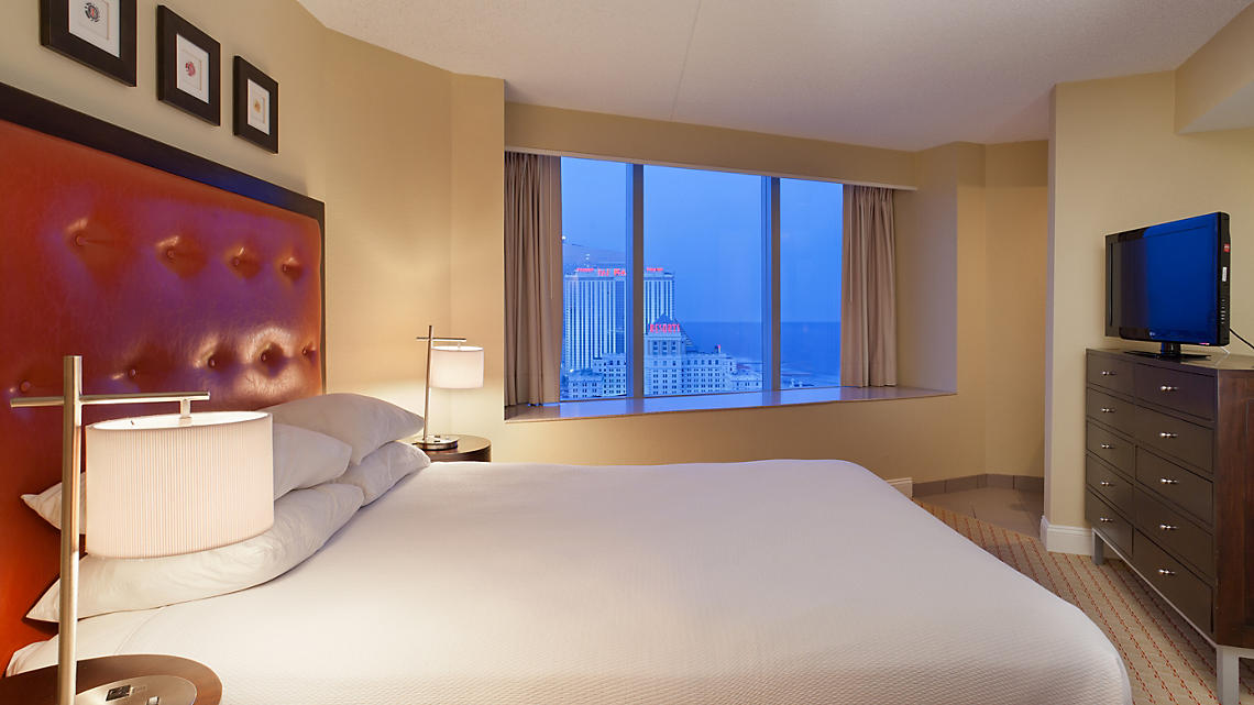 <p><strong>1 lit King Size</strong></p><p> < p> 450 pieds carrés </p >< br/>< p > < b> Internet</b> - WIFI gratuit (limite de 2 appareils) </p> < p > < b> Divertissement </b > - Télévision connectée de 65 pouces et station d'accueil pour iPod </p > < b> < b > < b > < b > Nourriture et boissons </b> - Cafetière/théière, service de chambre (heures limitées) et service de livraison de repas local </p > < b > < b > Dormir </b> - Lit d'oreiller, rideaux/rideaux occultants, et draps </p > < p>< b > Salle de bain privée, douche, peignoirs et sèche-cheveux </b> - Coffre-fort, fer/planche à repasser et ordinateur portable