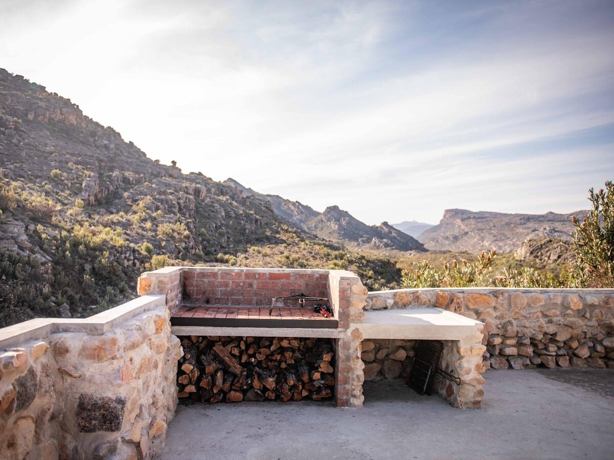 Sans doute le chalet le plus haut, à 1 200 m d'altitude, dans le Cederberg avec une vue imprenable sur le Koue Bokkeveld et le Cederberg. Il est situé contre un sommet de montagne entouré d'une flore du Cap immaculée. Un lieu de retraite et de silence profond. Le chalet, avec ses beaux boiseries et pierres, appartient à une autre époque. Il a été récemment rénové avec une plus grande cuisine et une salle de braai comme abri contre les vents du sud en été et pour profiter du soleil les après-midi d'hiver. Une piscine rocheuse privée se trouve à 150 m du stoep.