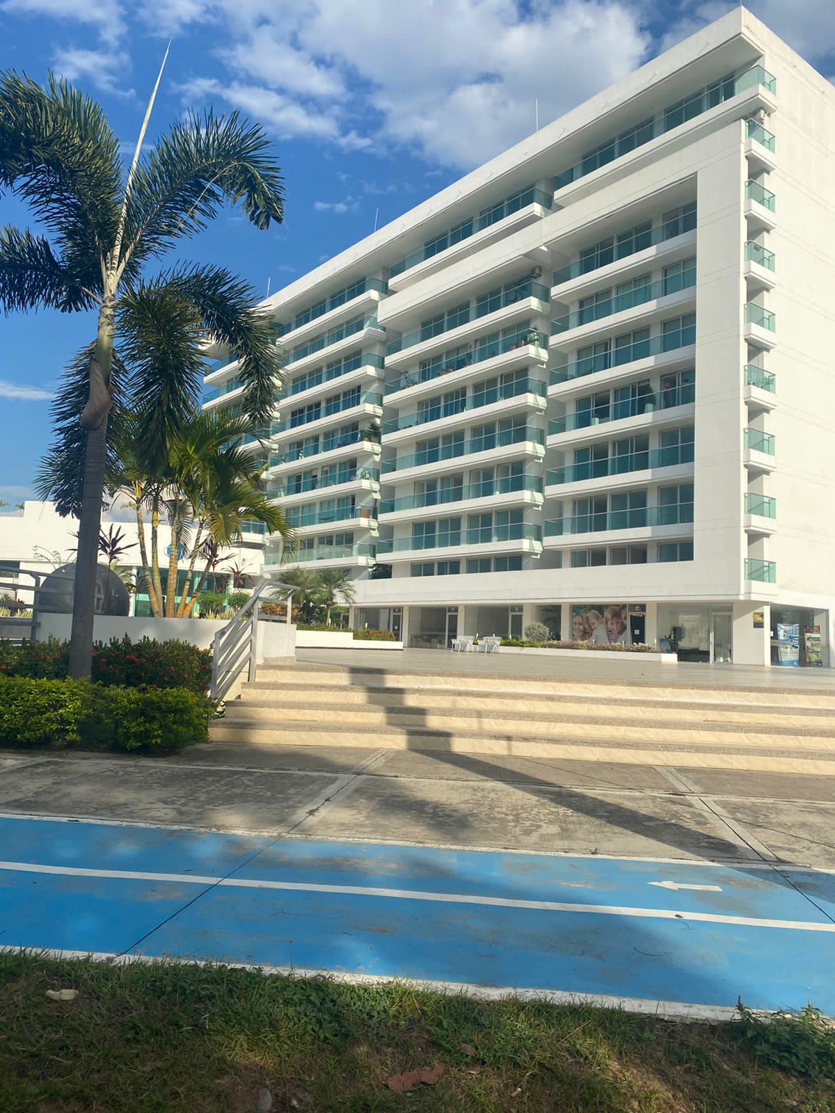 Hermoso y moderno apto nuevo de 3 habitaciones con aire acondicionado, 2 baños, Wifi, 2 Smart TV de 55 pulgadas, Tv por cable, Netflix, amplio balcón de 20 mts con salida desde las 3 habitaciones y la sala, vista espectacular. Edificio con confortables zonas comunes - 2 piscinas, 2 jacuzis, cancha de boley playa, salón de juegos para niños, 2 saunas, salón de baile, ciclo ruta. Ubicación estratégica, muy cerca al aeropuerto, clínica de primer nivel, centros comerciales y restaurantes