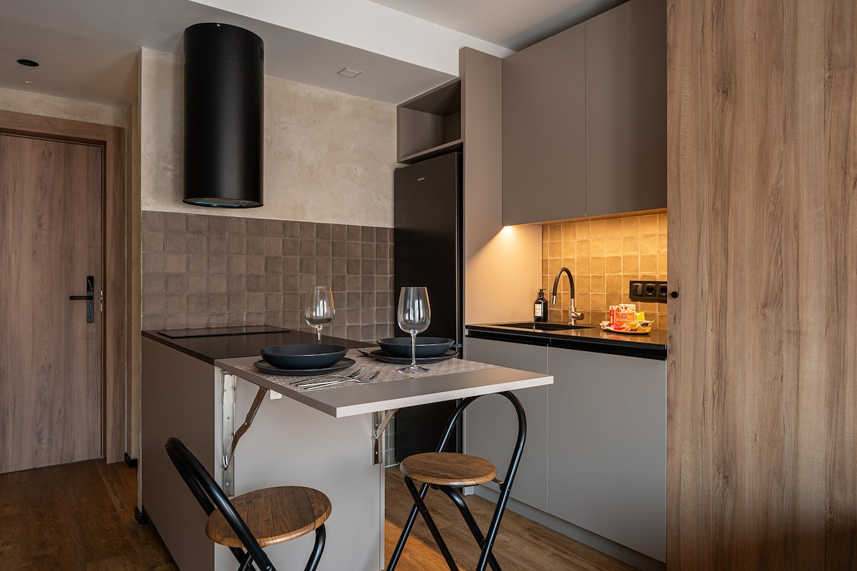 Magnifique appartement de 45 mètres carrés au cœur de Madrid. Avec un design et une décoration spectaculaires, des espaces spacieux et de hauts plafonds, l'appartement est équipé de tout ce dont vous avez besoin pour votre séjour à Madrid. Le salon dispose de trois balcons donnant sur la rue qui offrent une grande luminosité à l'appartement. La chambre dispose d'une salle de bains privative et d'un bureau. Depuis l'appartement, vous pourrez rejoindre à pied presque tous les points emblématiques de Madrid.