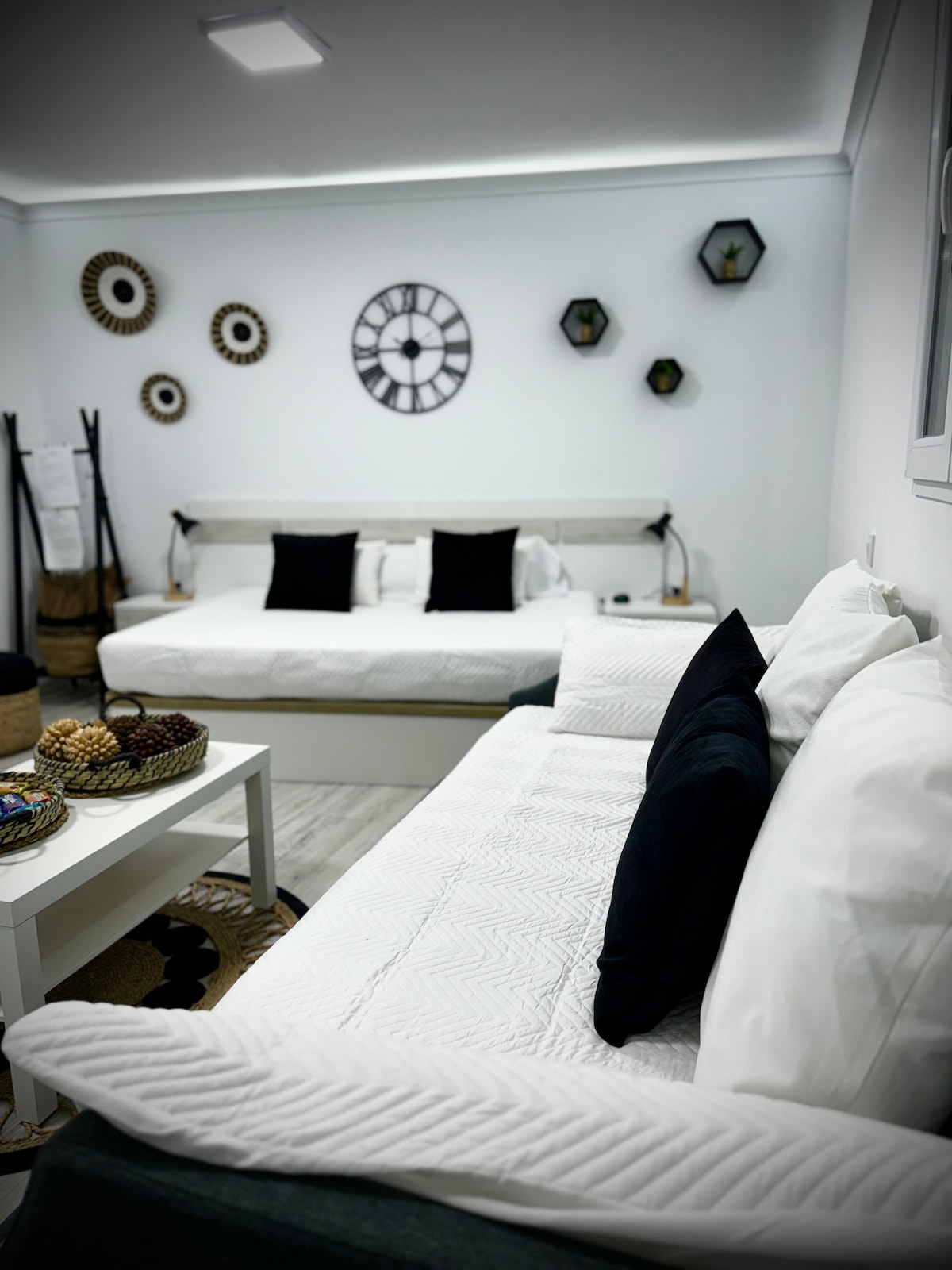 Suite moderna situada en pleno corazón de Madrid centro,entre el barrio la Latina y la plaza de cascorro (el rastro de Madrid) a 30m del metro “La Latina” 500m de “Tirso de Molina” y a 9 escasos minutos de la estación Atocha Renfe en coche (-2kms) hasta para 4 huespedes ya que cuenta con 1 cama de matrimonio,2 camas individuales mas 1 sofa cama y todas las comodidades que puedas necesitar recién reformada y hablitada. Wifi y Smart TV 55” Aire Acondicionado Chimenea Eléctrica Baño con ducha