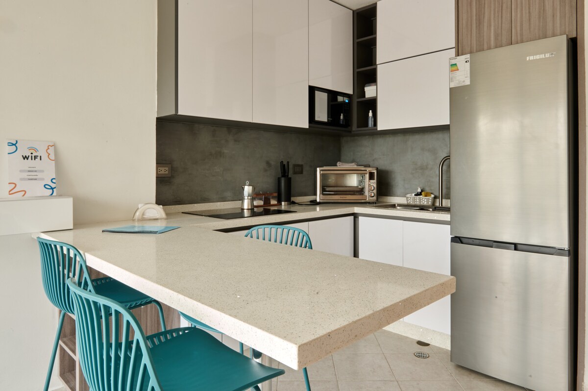 Votre appartement dans le meilleur quartier de Valence, avec tout le luxe et le confort dont vous avez besoin pour un séjour confortable et agréable. - Sécurité 24h/24. - 100 % de soutien en eau et en électricité. - Il dispose d'un opérateur de télévision par câble : SIMPLE TV. En outre, vous pouvez accéder à Netflix et à d'autres applications pour votre plus grand divertissement. - Site exclusif pour le travail à distance, ainsi que l'Internet par satellite via NETCOM, stable, sûr et rapide. - Lit Queen Size et canapé-lit supplémentaire.