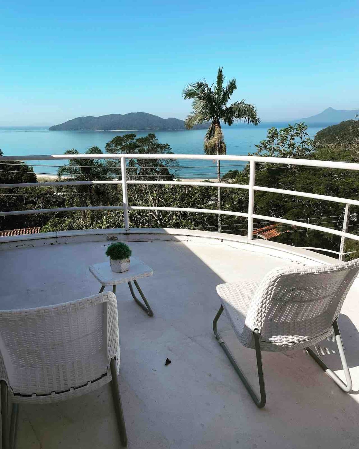 Propriété sur le sable en face de la plage avec de belles vues et un grand jardin. La maison offre une vue sur la mer de tous les environnements, de la table du petit déjeuner au confort du lit. Située dans une zone d'intérêt écologique, où se trouve l'Institut de recherche marine de l'Université de São Paulo. Accès à la propriété et à 2 plages contrôlées par voie terrestre. En face de la plage, il y a un bar flottant pour les bateaux et il peut y avoir de la musique.