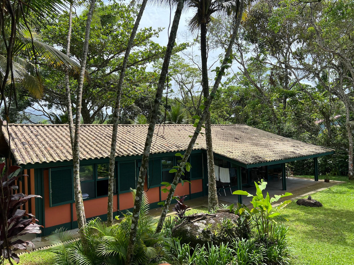 Venez vivre une expérience unique en plein cœur de la forêt atlantique à 350 mètres de la mer ! La maison est dans une copropriété fermée avec une sécurité 24h/24. Il n'y a pas d'autoroute entre la maison et la plage. La maison est calme et au rez-de-chaussée, dispose de trois chambres, trois salles de bains, salle à manger et salle de télévision, cuisine et barbecue, douche baignée dans la nature, nous acceptons votre animal de compagnie ! La plage sert toutes sortes de publics ! Nous offrons l'équipement de plage ! Il se trouve à 9 km du centre historique de São Sebastião.
