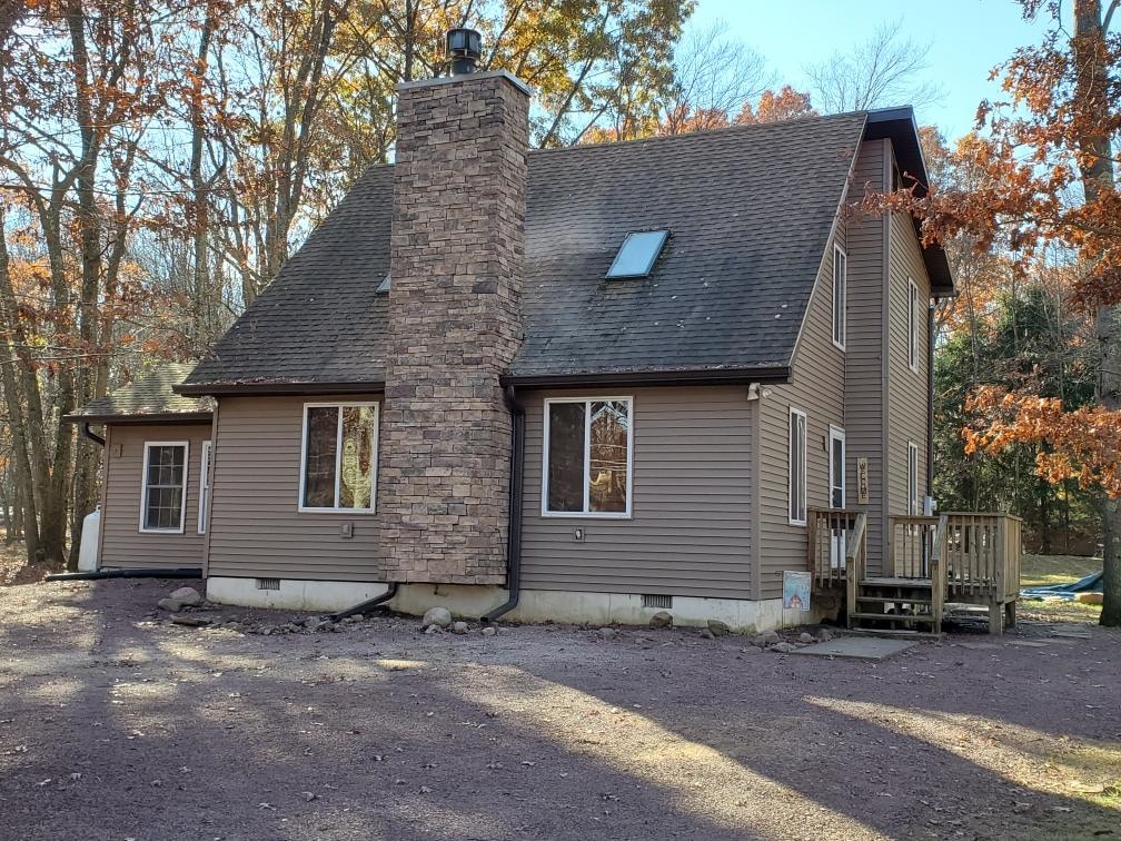 Niché dans les montagnes Pocono un chalet familial récemment rénové, moderne, spacieux et accueillant dans une communauté remplie d'équipements Escapade privée de 3000 pieds carrés avec 4 lits et 3 salles de bain reposant sur 1,5 acres avec vue imprenable sur une réserve forestière protégée Profitez du sauna, du nouveau jacuzzi, de la salle de jeux, de la cheminée et du brasero La communauté offre 5 lacs, 3 plages, un lac de pêche, 2 piscines, des terrains de jeux, des courts de tennis et de basket-ball À quelques minutes de l'observation des oiseaux, de la randonnée, des vignobles, du ski, des parcs aquatiques intérieurs, du golf et des casinos
