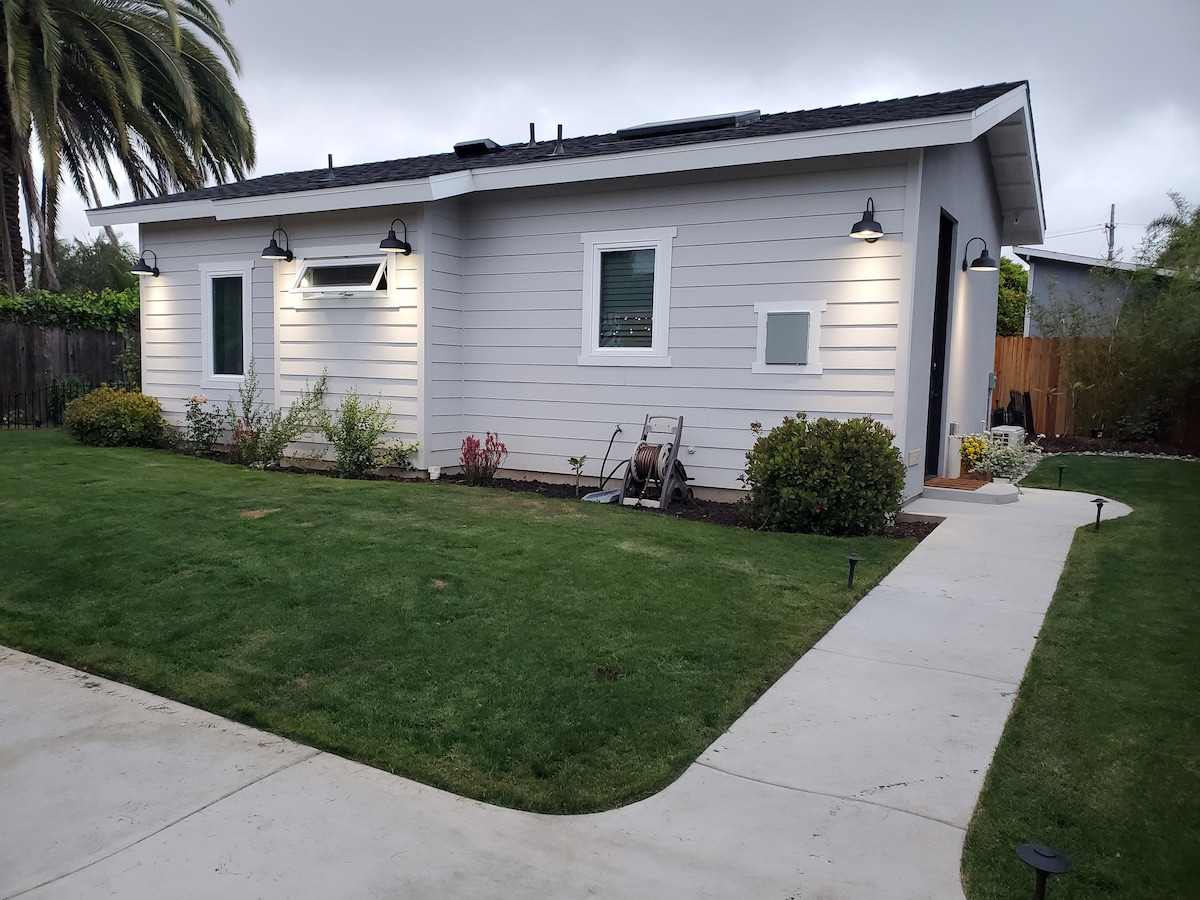 Cette maison a été construite en 2018 et mesure 640 pieds carrés avec 1 chambre, 1 salle de bain, cour privée clôturée, à moins de 1 mile de la plage de Carlsbad. Elle est entièrement équipée avec tout le nécessaire, y compris le chauffage central et la climatisation, un lave-linge et un sèche-linge de grande taille, une cuisine entièrement équipée et un coin salon avec salle à manger et salon. Il y a une salle de bain complète avec douche. Cette maison dispose d'une entrée privée entièrement entourée d'une cour privée aménagée, d'un barbecue et de sièges.
