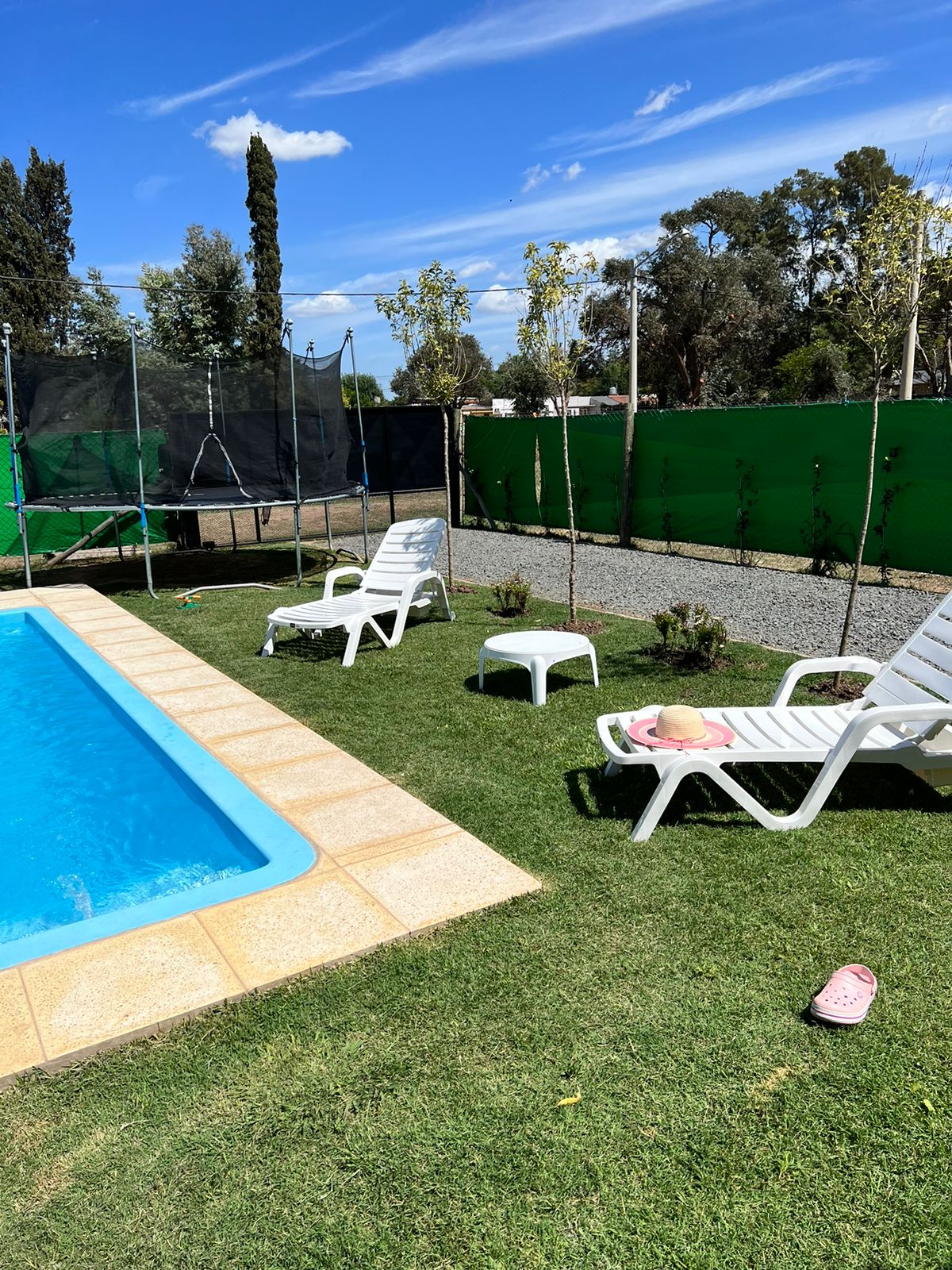 Maison à Carmen de Areco, à seulement 1h30 de CABA. Spacieuse et lumineuse, avec salon avec foyer à bois, cuisine équipée, salle de jeux avec piscine et bar, 3 chambres et 2 salles de bains. Jardin d'hiver idéal pour lire et se détendre. Quincho vitré avec salle de bain et barbecue couvert. Grand parc boisé, piscine clôturée, galerie avec fauteuils et espaces de détente (foyer). Idéal pour les familles et les groupes à la recherche de nature, de confort et de repos.
