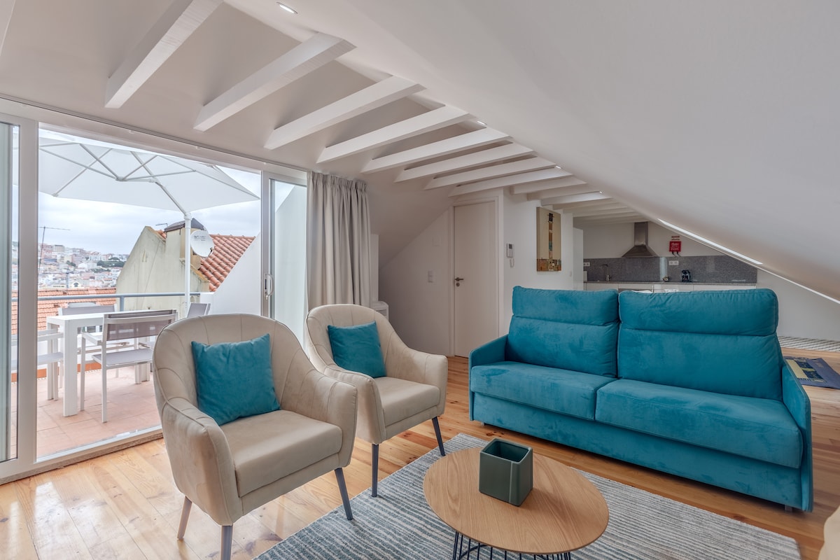 Profitez d'une expérience unique dans ce luxueux penthouse situé dans le quartier de Chiado. Avec une vue imprenable sur la ville et la rivière, il dispose d'un loft et d'une terrasse avec une vue unique à 180 degrés. La cuisine ouverte est conçue avec des appareils électroménagers et un espace repas de haute qualité qui mène au salon. Pour le soir, 2 lits king size et 3 salles de bain avec placards offrent détente, confort et organisation d'accueil. Le loft du dernier étage dispose d'un coin bar, d'une télévision et d'un canapé confortable pour un moment de calme.