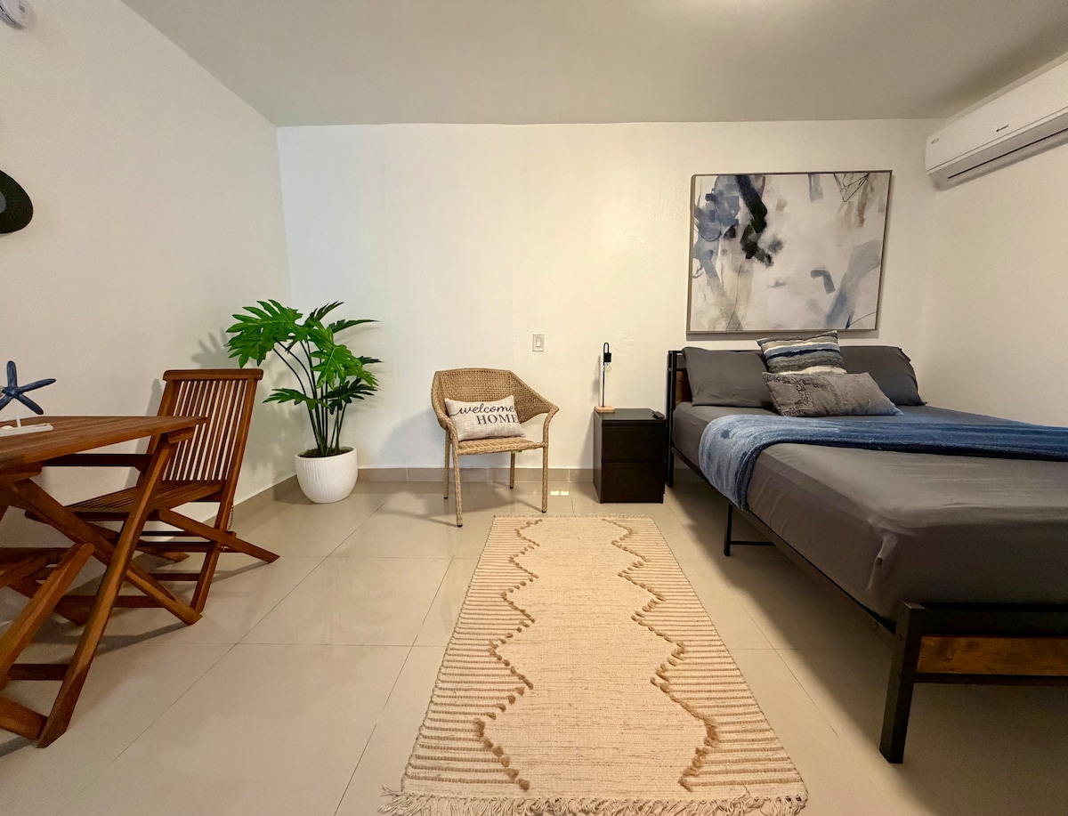 Espace magnifique et moderne, parfait pour un couple ou un groupe de quatre personnes. Stratégiquement situé à 5 minutes de l'aéroport et à 10 minutes de San Juan. Venez à Porto Rico et profitez des plages, de ses habitants et bien plus encore. L'appartement se compose d'un salon avec un canapé-lit queen size, d'une belle chambre avec un lit queen size, de deux unités de climatisation, de deux téléviseurs et d'une belle cuisine moderne avec tous les ustensiles pour cuisiner, un parking privé et un balcon à partager avec votre famille.