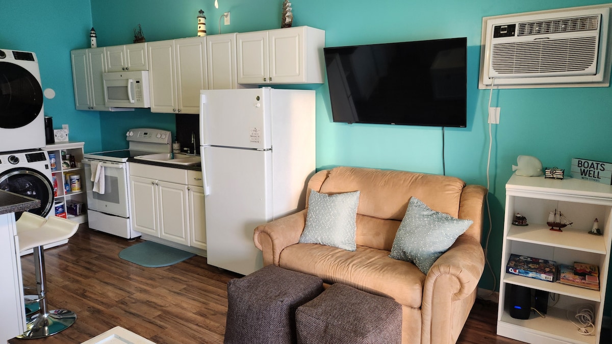 Appartement d'une chambre dans le centre-ville historique d'Elmore, OH, à proximité de l'I-80/90 (Ohio Turnpike). Hauts plafonds et grandes fenêtres. Lit King Size haut de gamme et canapé-lit Queen Size. Salle de bain rénovée en janvier 2025. Cuisine approvisionnée. Lave-linge/sèche-linge. Accès Internet. Situé à proximité du sentier intérieur de la côte nord, des parcs, des restaurants et des bars. À 20 minutes en voiture des îles du lac Érié et du centre-ville de Toledo.