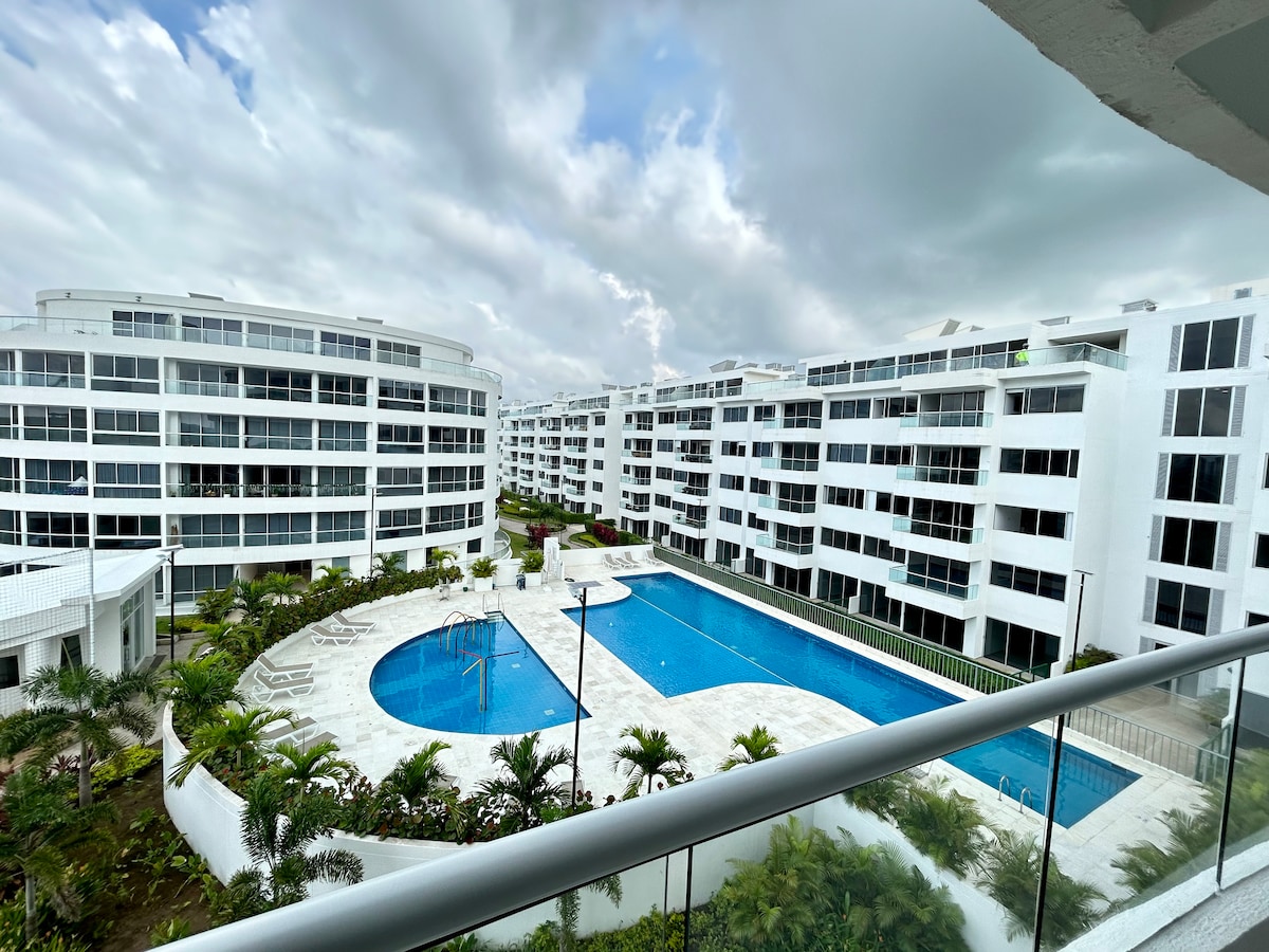 Réveillez-vous au son de la mer des Caraïbes et profitez d'une vue spectaculaire depuis cet appartement moderne à Marbella. ✔ 3 Chambres climatisées ✔ Piscine à débordement, jacuzzi et salle de sport Accès ✔ direct à la plage ✔ Balcon privé avec vue panoramique. ✔ À seulement 5 minutes de l'aéroport et de la ville fortifiée Parfait pour les familles, les couples, les voyageurs d'affaires et les groupes d'amis à la recherche de confort, d'un emplacement privilégié et d'une expérience inoubliable à Carthagène.