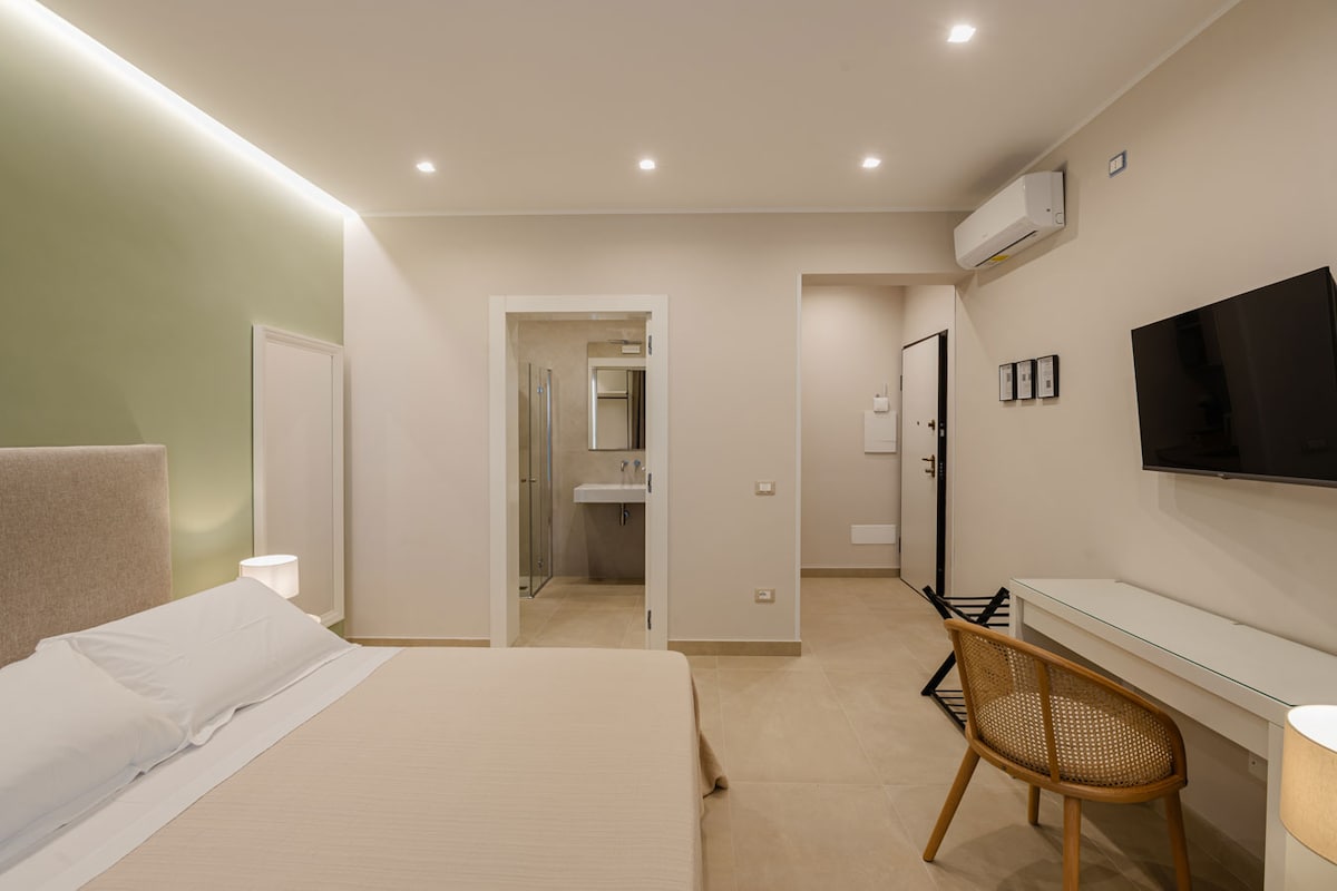 Studio Anatólio est un studio confortable pour deux personnes au cœur du centre historique de Castellammare del Golfo. Décoré avec soin dans un style minimaliste et méditerranéen, il offre un cadre raffiné et lumineux. La cuisine fonctionnelle, la salle de bain moderne et un balcon avec une vue imprenable directement sur la plage. Le balcon s'ouvre sur un spectacle unique : la mer à quelques pas et un lever de soleil qui illumine doucement la côte, offrant un réveil lent et authentique.