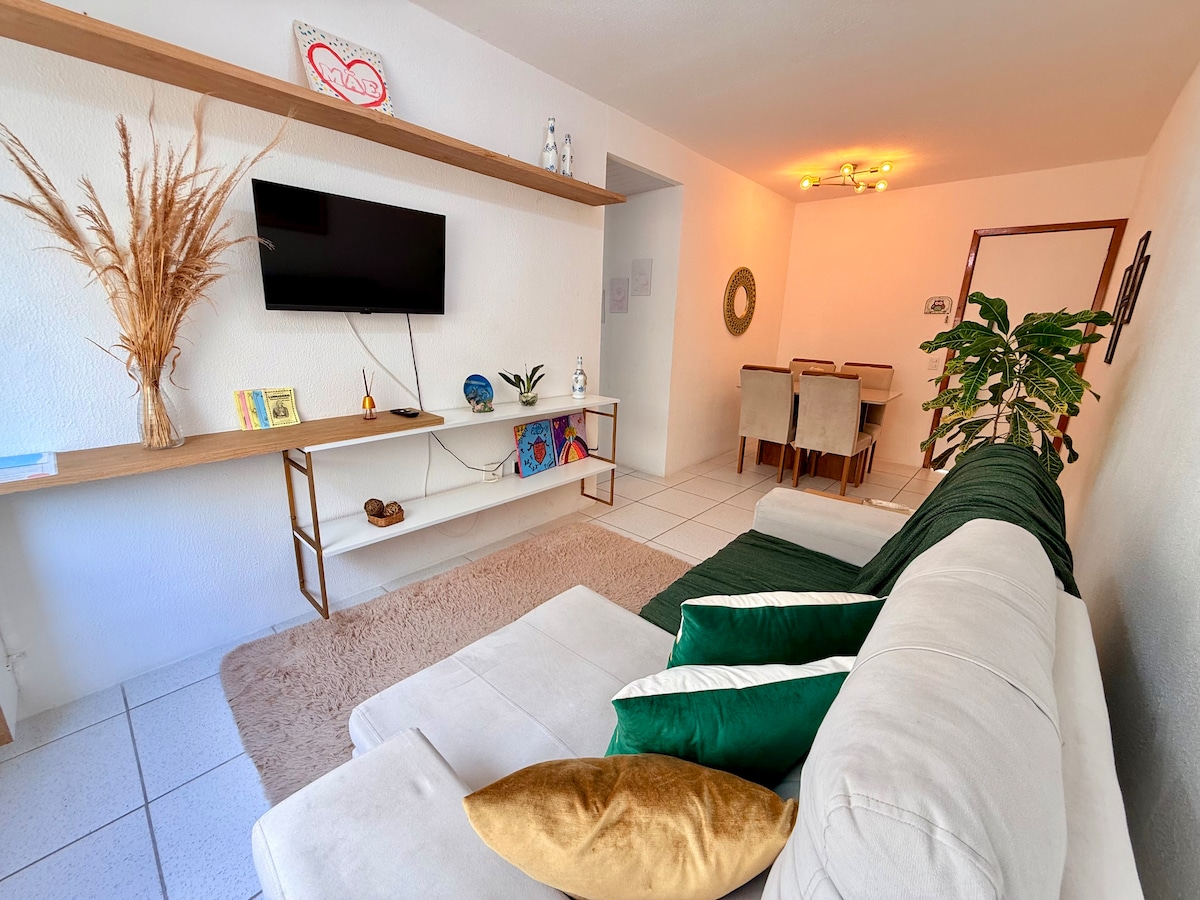 Logement en rame avec 1 lit double dans la chambre à coucher et dans le salon un canapé Bicama pouvant accueillir jusqu'à 4 personnes. - À 500 mètres du centre commercial Caruaru 🛍️ - À 400 mètres de Point do caldinho 😏 - 300 mètres de la boulangerie 🥯 - À 5 m en voiture du patio de l'événement de Caruaru. - À 8 m en voiture de Caruaru Craft Fair 👒