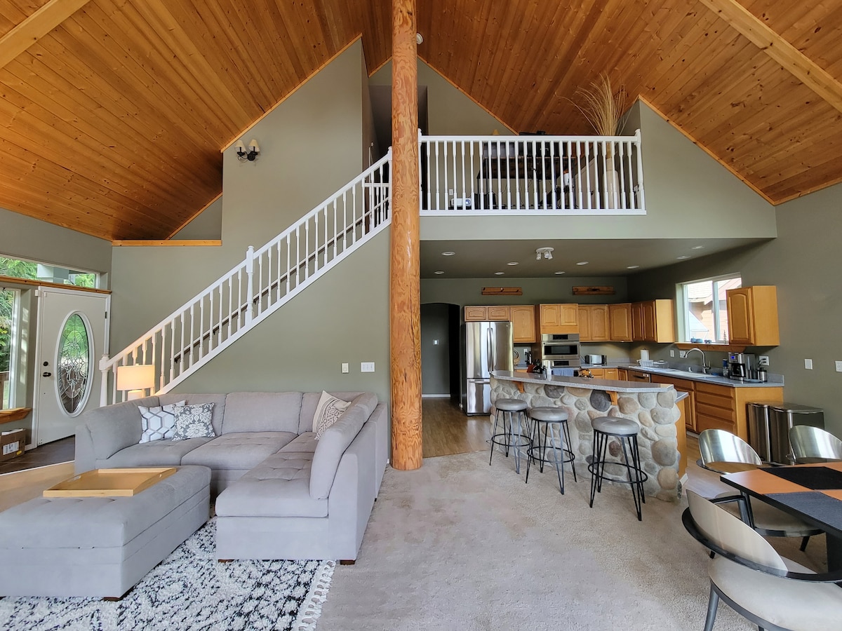 Détendez-vous et profitez de la vue dans cette élégante maison de retraite insulaire ! Située dans un quartier fermé sur l'île Harstine. Vue imprenable sur le détroit de Puget et les montagnes Olympiques Cheminée carrousel Table de billard Cuisine 1 chambre avec lit King Size 1 chambre avec lit Queen Size 1 chambre avec 2 lits jumeaux 1 chambre d'enfant supplémentaire avec lit complet dans le loft Buanderie Platine vinyle Sonos Équipements communautaires : Piscine olympique et jacuzzi Terrains de tennis et de pickleball Aire de jeu pour enfants Sentiers de randonnée Foyers sur la plage Faune Kayak, rampe de mise à l'eau, marina et plus