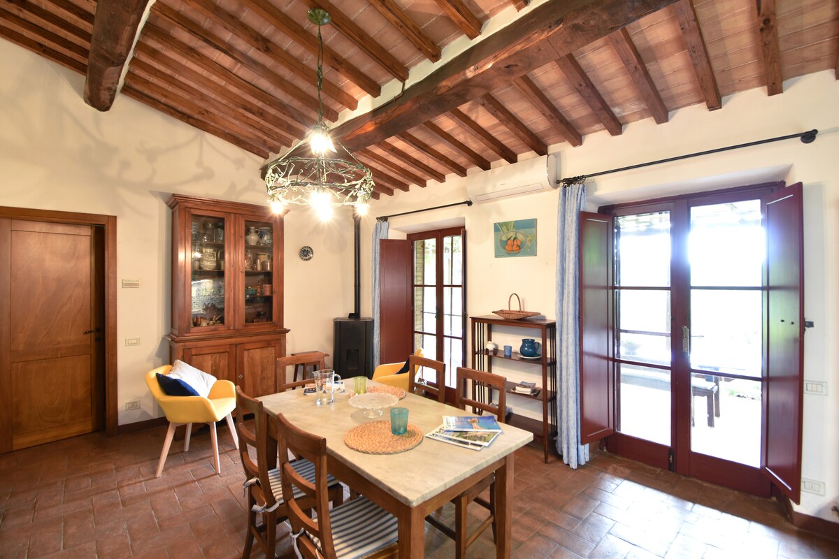 Passez des vacances au cœur de la campagne toscane dans cette confortable maison en pierre avec des sols en terre cuite et des plafonds à poutres en chêne massif, meublée avec des peintures de l'auteur, équipée de tout le confort. Profitez de la grande piscine à débordement (18 m x 9 m, ouverte du 1er mai au 15 octobre pour les clients de la maison en pierre uniquement) ou détendez-vous dans un fauteuil sous la loggia, en dégustant un verre de Chianti devant les collines vallonnées de vignobles, d'oliveraies, de bois et de villages médiévaux.