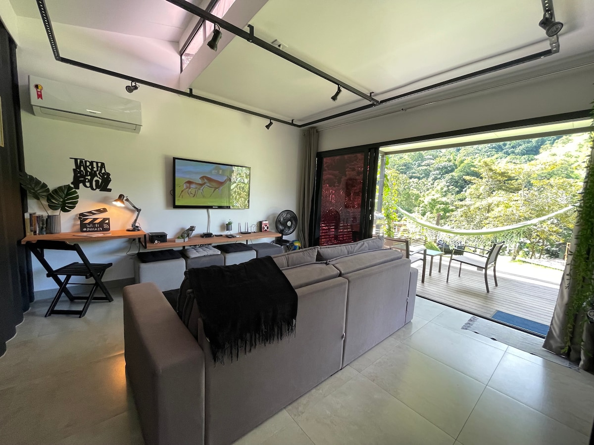 Nous sommes situés à Sana RJ dans une grande propriété avec un emplacement privilégié. Nous cherchons à offrir à nos clients des moments et des souvenirs inoubliables de beaucoup de paix, de repos et de contact avec la nature. Il y a deux terrasses dans la zone extérieure, l'une avec une vue panoramique et privée et la seconde au bord de la rivière. Idéal pour la méditation, les pratiques de yoga et bien sûr, les jeux avec les enfants. Pour les créateurs de contenu, un espace parfait pour des photos et des vidéos incroyables ! Suivez @aconchegonosana