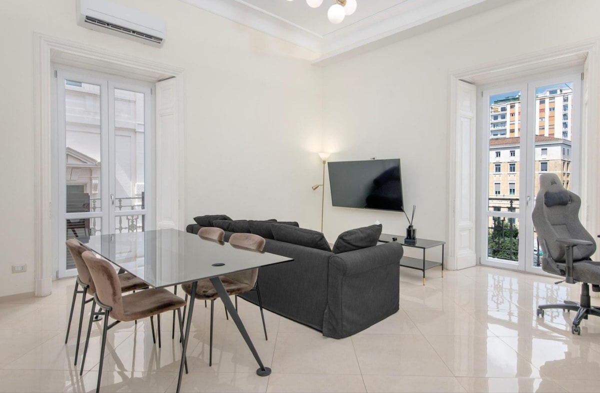 Plongez dans un élégant appartement de deux chambres et deux salles de bain au cœur de Naples historique, à quelques pas des meilleurs sites culturels et des excellents restaurants. Profitez d'un mélange de meubles anciens, d'un design moderne et d'une technologie de pointe, y compris un espace de travail dédié avec un grand moniteur, une machine à café entièrement approvisionnée, un fauteuil confortable, une connexion Wi-Fi haut débit et Alexa. Détendez-vous dans un charmant bâtiment historique avec tout le confort d'un chez-soi