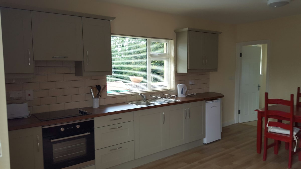 Notre confortable appartement moderne de 2 chambres se trouve en fond de chez moi. Entouré de vues fabuleuses, privées et calmes. Parking privé. À seulement 2 minutes en voiture du village de Castletown geoghegan qui dispose de 3 pubs traditionnels et d'un fabuleux nouveau restaurant de pizzeria. Vous y trouverez également une belle promenade/vélo sur le vieux chemin de fer de Dublin à Galway, à seulement 2 km. Centre d'aventure Lilliput au bord de Lough Ennell à 5 minutes de là. Nous sommes à 12 km de la ville de mullingar et à 20 km d'Athlone.