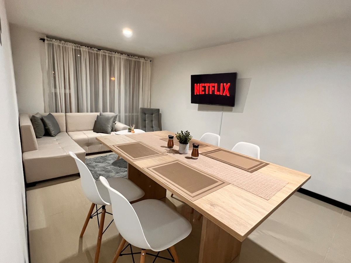 Appartement studio meublé avec tout ce dont vous avez besoin pour profiter d'une expérience agréable, il dispose de services Internet, eau, électricité, et gaz Emplacement idéal, proche de 5 hôpitaux , zone rose de la Cuidad, 5 universités, service de conciergerie. Service de blanchisserie, salle de cinéma, espace barbecue , salle d'événements moyennant des frais supplémentaires, TV Android avec Netflix. Nous sommes heureux de vous accueillir dans notre hébergement.