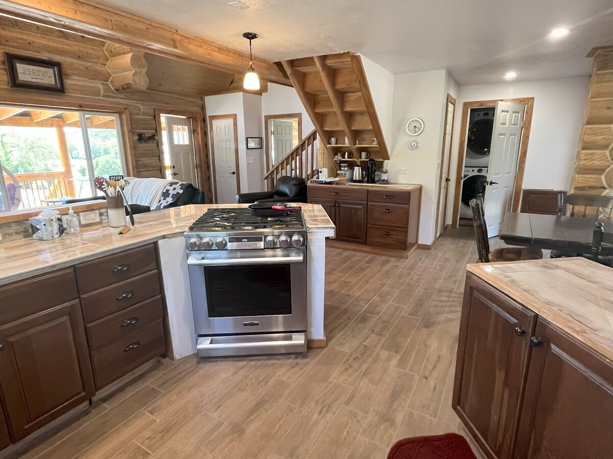 800 Sq. cabane dans la communauté fermée de National Forest, à 1 mile du lac Quemado. Un réservoir d'eau derrière la maison attire des wapitis certaines soirées. La chambre dispose d'un matelas King Size à double réglage, équipé de draps Giza Dreams et d'un canapé-lit confortable dans l'espace commun. Eau « City », lave-vaisselle, laveuse et sécheuse, 700 m ² Ft. dog run and 500 Sq. Ft. deck. Confortablement meublé, avec beaucoup de fenêtres et une porte coulissante sur la terrasse. Entrée sans clé. Livraison FedEx et UPS.