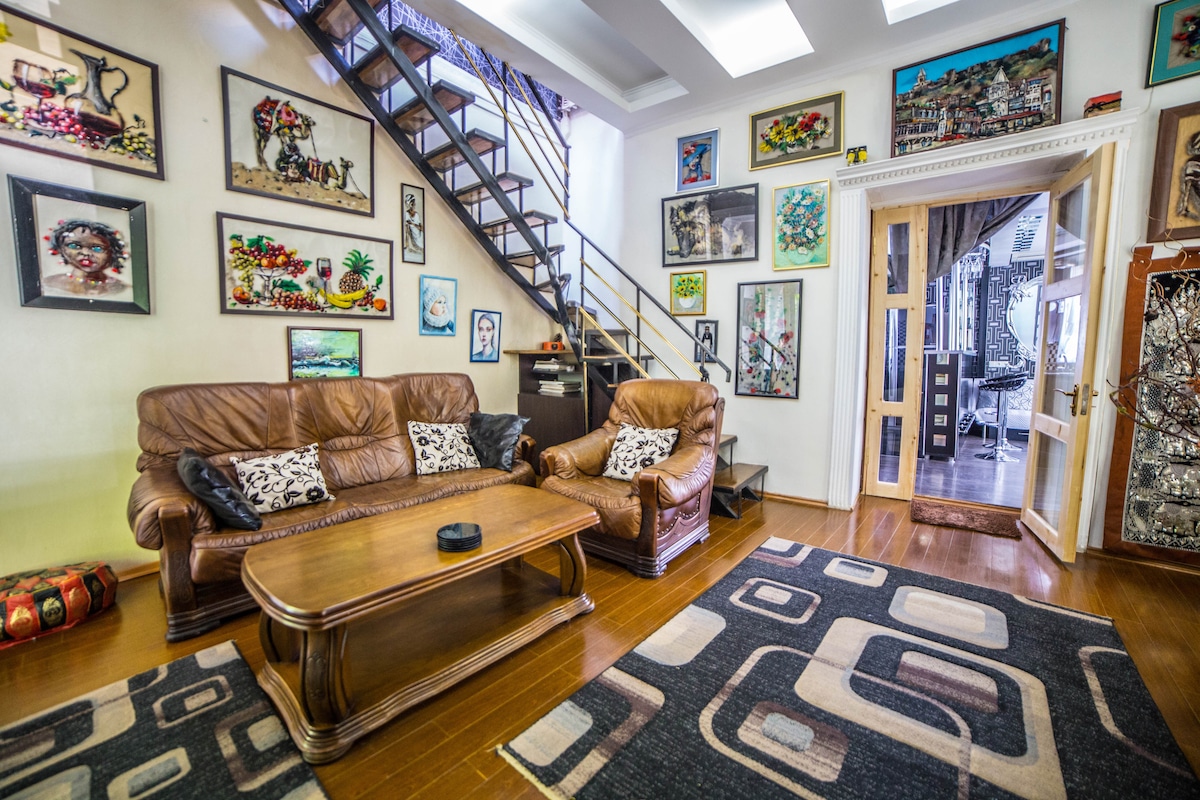 L'appartement est situé en PLEIN CŒUR de la VIEILLE VILLE de TVILISI sur Meidana, où vous pouvez sentir la vraie saveur géorgienne et toucher l'histoire la plus ancienne. À quelques minutes à pied, il y a de nombreux monuments historiques, un jardin botanique, des bains de soufre, des églises et des forteresses. Après une promenade intéressante et colorée dans la vieille ville, vous pourrez déguster les plats de la célèbre cuisine géorgienne et écouter de la musique agréable dans les cafés et restaurants originaux.