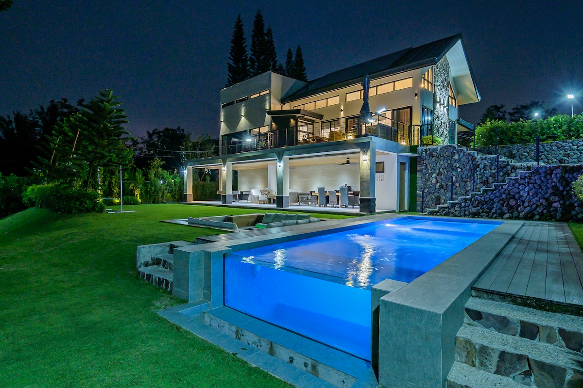 Une villa privée industrielle moderne où le luxe rencontre l'évasion sereine. Niché sur Tagaytay-Calamba Road (oui, vous pouvez profiter de la météo de Tagaytay sans passer par la circulation de Tagaytay), l'endroit est accessible par plusieurs points de sortie depuis le Grand Manille - Mamplasan/CALAX, Sta. Rosa, Greenfield/Eton ou Silangan. Seulement 10 minutes. fr. Nuvali et à 4 minutes de l'ancienne Marcos Twin Mansion, vous pourrez profiter d'un bol d'air frais et d'une vue pittoresque relaxante sur le mont Makiling, Laguna de Bay, Talim Island et MMla