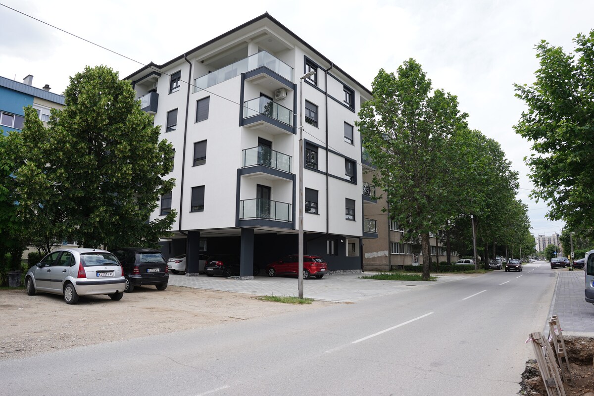 A welcoming atmosphere, in a very quiet area close to the city center. New furniture, fitted kitchen (stove, hood, fridge, dishwasher, dishes and cutlery) no microwave, washing machine, air conditioning, smart TV with Netflix, high-speed Wi-Fi internet. One bedroom with a double bed and one bedroom with a single double bed (can be unfolded and turned into two single beds), bed linens and towels included. Free parking on the street. Grocery store în front of the building.