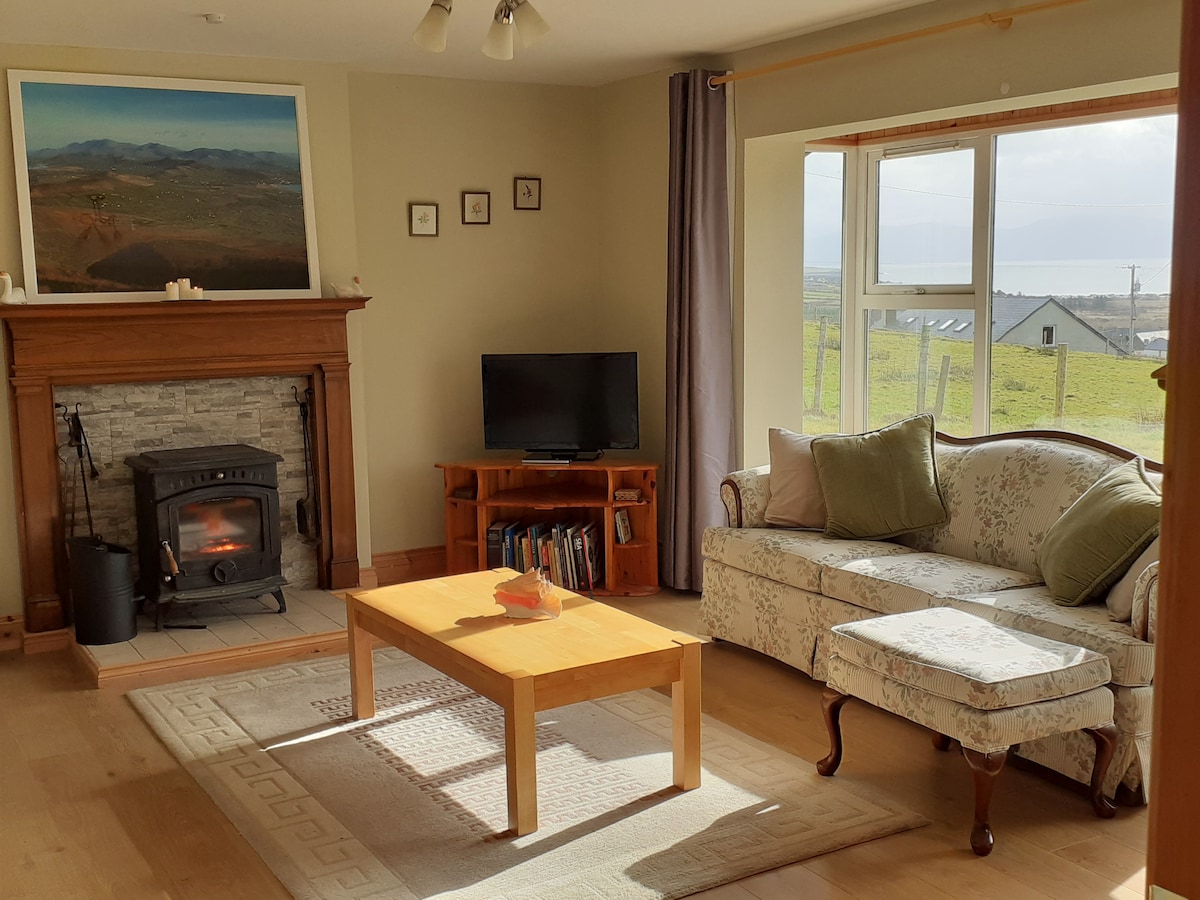 Unspoilt Sea Views Of Great Blasket Island on the Dingle Peninsula. Spectacular Mount Eagle 🦅 views . Moon 🌓 and Shooting Star ⭐️ to be seen on clear nights ! Beautiful spacious luxurious home with all mod cons, satellite TV, cd, DVD, Fast WiFi, Alexa .. Film location for Ryan's Daughter & Far and Away. View Skellig Michael of Star Wars hill walking, fishing, irish music, pubs, local food & culture Just relax and marvel at the sight of the mighty Blasket Island & Atlantic Ocean !