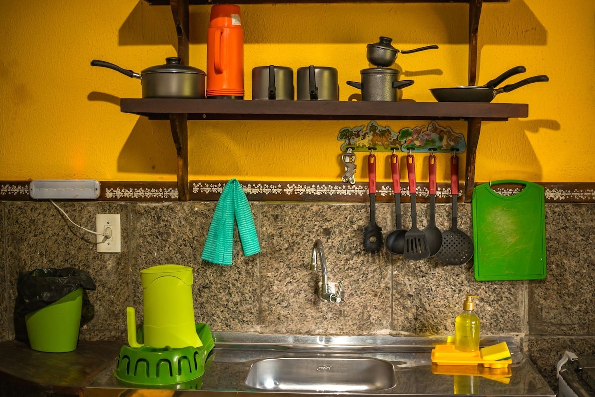 Paradis vert à Mulungu, à 17 km de Guaramiranga, un endroit froid et confortable, idéal pour ceux qui recherchent le repos et le contact avec la nature. Il dispose d'un espace de loisirs complet ! L'appartement se compose d'un lit double et d'un lit superposé, d'une cuisine avec des ustensiles tels qu'un réfrigérateur, une cuisinière, des casseroles et des poêles, un mixeur, etc. Salle de bain privée avec douche chaude. Dans nos terres, recoins et recoins (hiver) à la disposition de nos voyageurs. Saíra Recanto de Serra, sa maison loin de chez elle.
