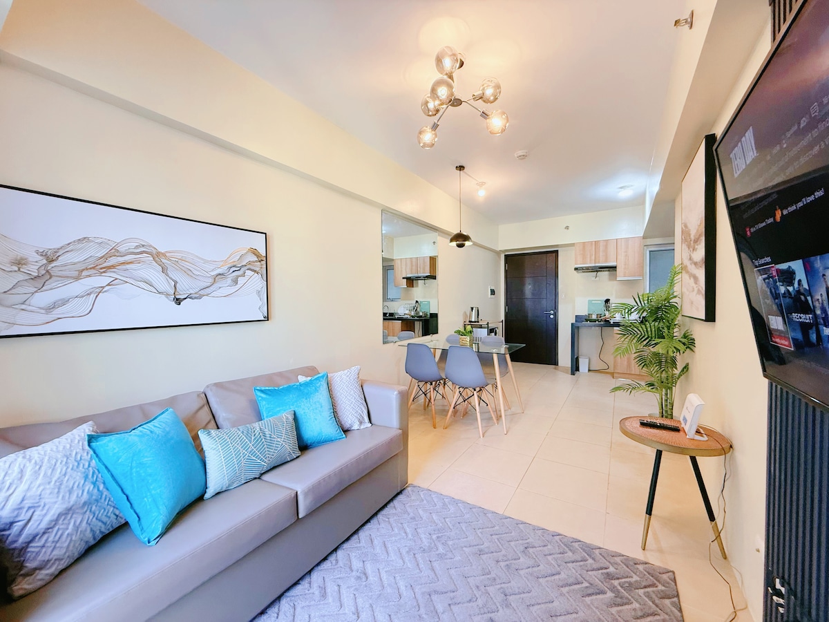- Appartement récemment rénové, propre, confortable et luxueux au cœur d'IT Park - Peut accueillir jusqu'à 4 personnes - Profitez d'une connexion Internet rapide de 500 Mbps - Télévision connectée 4K 50" avec Netflix, Disney+, Amazon Video, Youtube et plus encore - Cuisine complète et lave-linge entièrement automatique - Détendez-vous dans trois piscines - À distance de marche d'Ayala Mall et de Sugbo Mercado - Profitez d'une variété de restaurants locaux et internationaux, de cafés, de bars et de magasins pratiques, tous à quelques pas de votre porte.