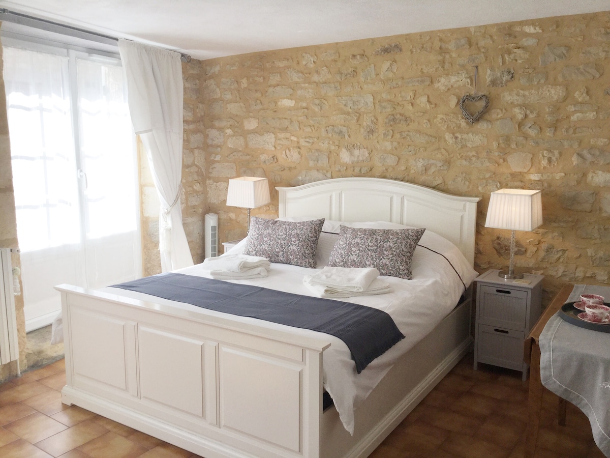 Idéalement située au pied du château de Castelnaud, dans une ruelle de charme au calme, cette ancienne grange restaurée sera un lieu idéal pour vos vacances, week-ends, déplacements professionnels, points d’étapes. Très calme, La Chambre "Castelnaud" à l'étage dans une aile indépendante dispose d'un lit King size, une salle d'eau privée douche ouverte sur la chambre. Un grand jardin, des espaces de repos, salon de jardin pour les petits déjeuners et une sublime vue sur la vallée de la Dordogne.