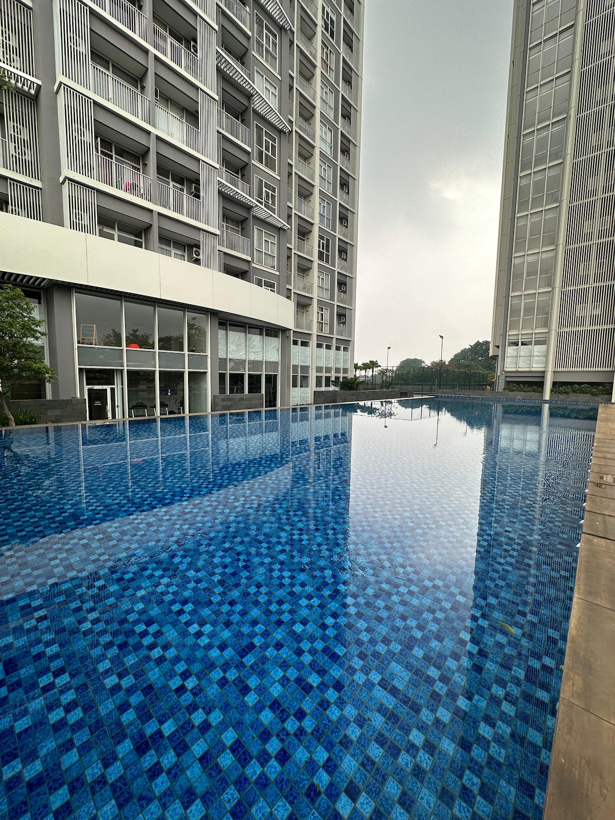Situé au 22e étage de la tour A, ce studio a été rénové en mai 2025 et dispose d'un intérieur frais avec connexion Wi-Fi et Netflix. L'appartement est équipé de la climatisation, d'un réfrigérateur, d'un ensemble de cuisine et d'équipements de vie essentiels complets pour votre confort. Les installations du bâtiment comprennent une salle de sport, une piscine, une aire de jeux et une sécurité 24h/24. #Convient pour 2 personnes. Pour la location mensuelle, nous rechargeons l'électricité avec 600 000 IDR, ce qui est généralement suffisant pour un mois. Bienvenue, faites comme chez vous 💕