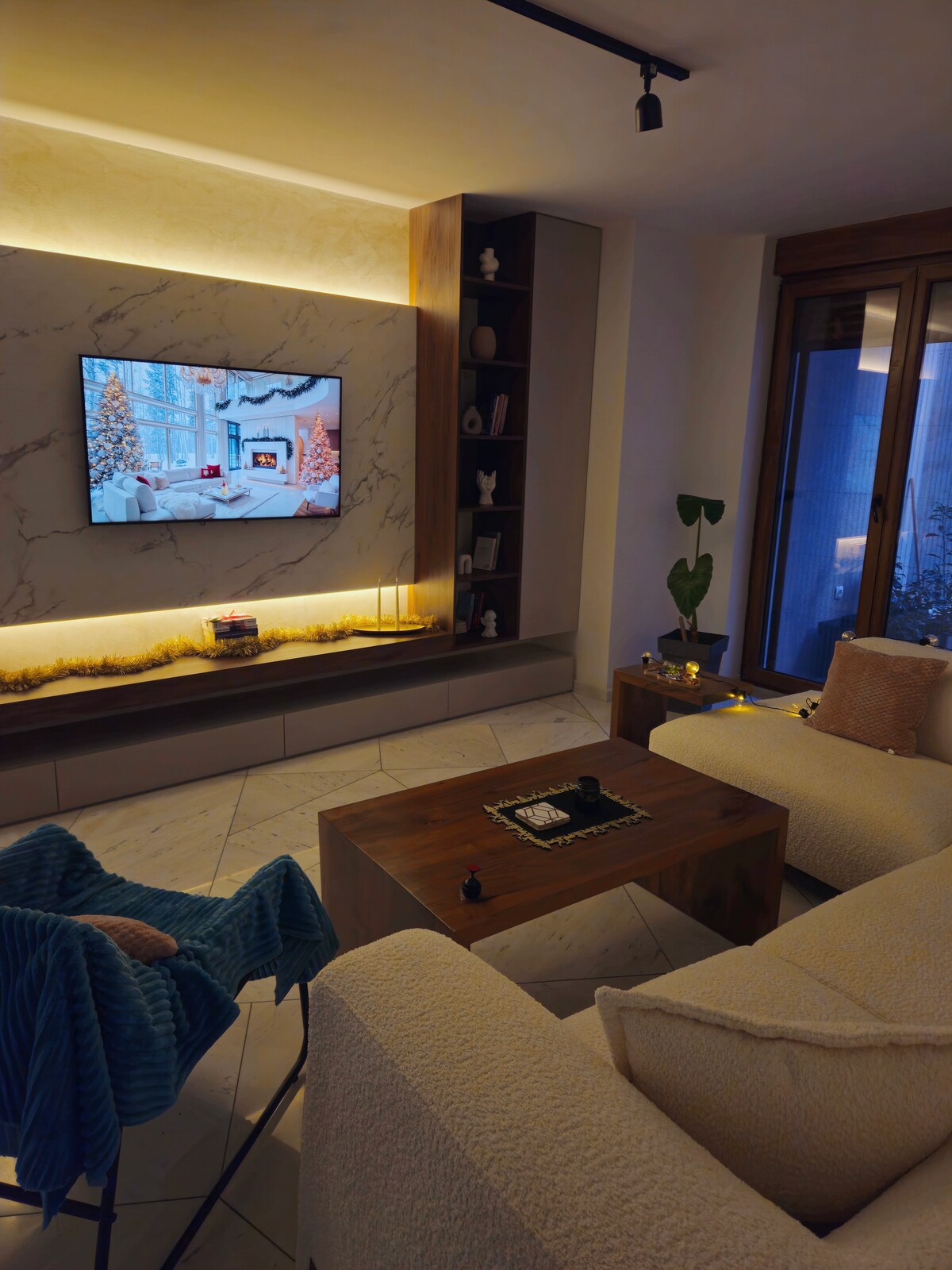 Bienvenue dans votre retraite en hauteur au cœur de Skopje ! Situé dans le prestigieux immeuble Diamond of Skopje, cet appartement offre une vue imprenable sur la ville depuis le salon et la chambre. - Spacieux salon avec un téléviseur intelligent. - Cuisine entièrement équipée avec four, cuisinière, réfrigérateur et machine à café. - Parking privé gratuit. - Lit king size avec draps de qualité hôtel. - Une salle de bain avec douche à l'italienne. - Balcon privé avec sièges — parfait pour le café du matin ou le vin du soir.