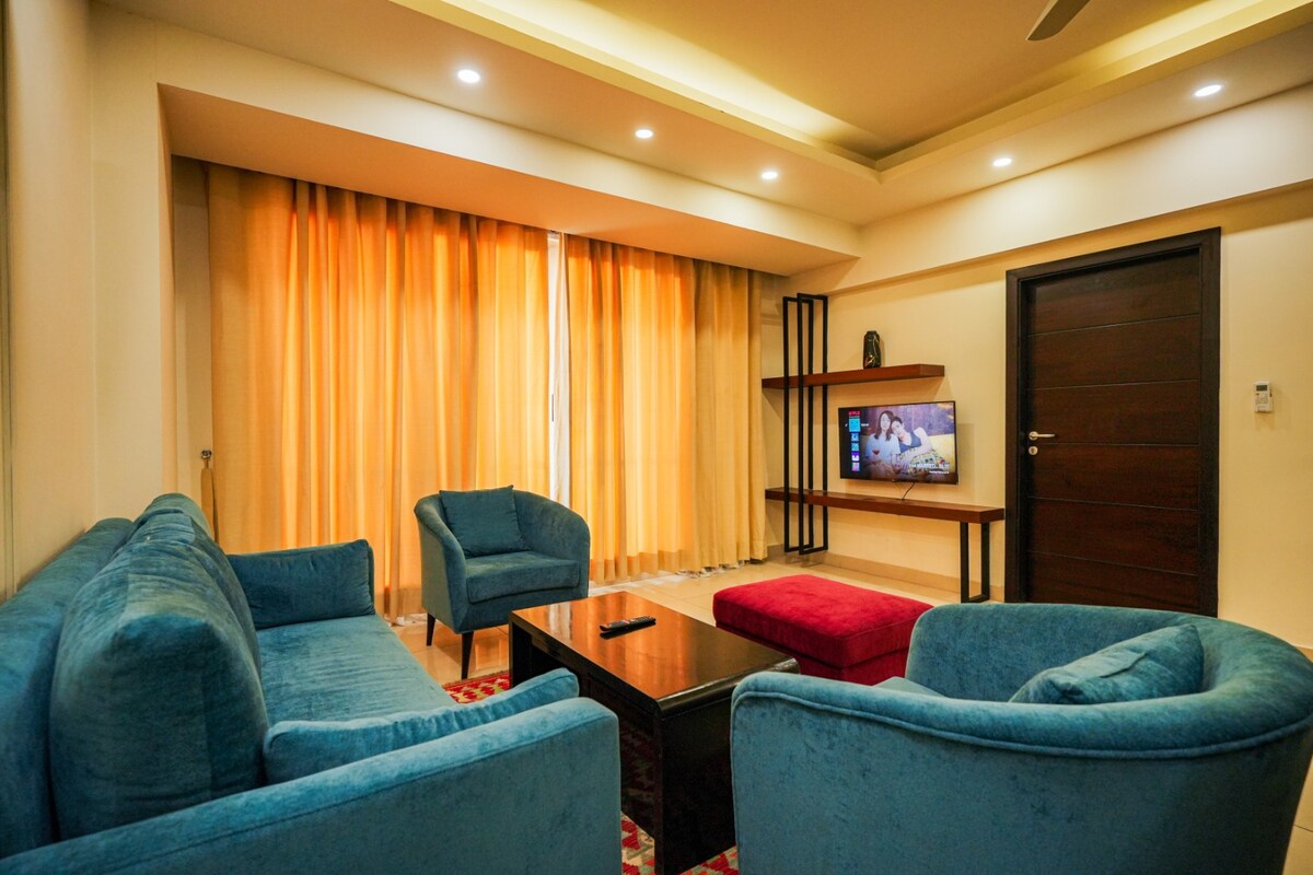 Entrez dans les appartements Flamingo Grand de 3 chambres, les appartements de service les plus sophistiqués et les plus esthétiques d'Islamabad. Profitez d'un logement sûr, sécurisé et élégant dans un endroit central. Que vous visitiez Islamabad pour le plaisir ou pour le travail, nous vous assurons une expérience 5 étoiles. Vous profiterez également d'une place de parking gratuite et sécurisée, d'une connexion Wi-Fi gratuite et de la possibilité de regarder vos séries télévisées préférées sur le téléviseur LED intelligent de 65 pouces.
