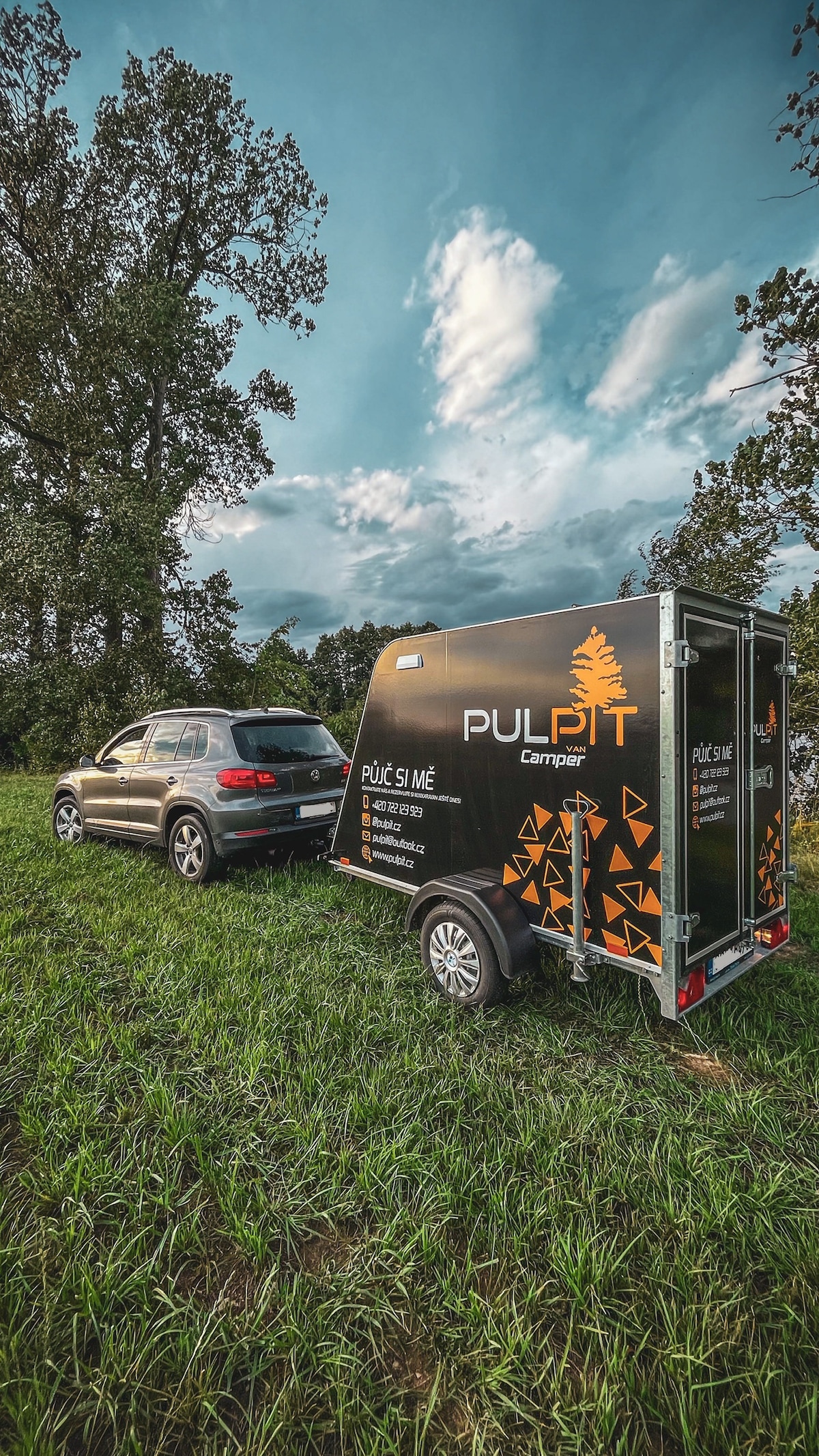 - Camping dans une mini remorque moderne Pulpit CamperVan. - Connexion facile à la voiture (permis de conduire du groupe B). - Un endroit confortable pour dormir et se détendre. - Idéal pour un voyage confortable avec les avantages d'un hébergement. - Les équipements comprennent une cuisinière à gaz avec des accessoires. - Douche solaire, bidon d'eau - Mobilier de camping - Éclairage LED - Prise 12 V pour les appareils de recharge. - Expérience de camping avec votre propre confort. - CamperVan est une façon inhabituelle de voyager et de séjourner.