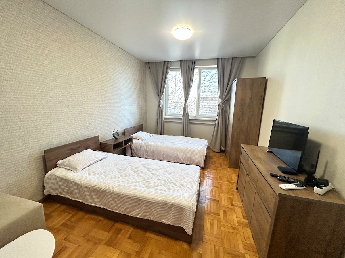 Appartement 2BDR récemment reconstruit et entièrement meublé avec un jardin privé et un parking. L'endroit idéal pour les familles, les amis et tous ceux qui visitent Plovdiv. Situé au cœur de Plovdiv, à quelques pas de la zone piétonne, il offre une intimité paisible dans une maison calme. Profitez d'être à distance de marche des meilleurs restaurants et attractions. À l'intérieur, vous trouverez un salon confortable avec une connexion Wi-Fi, la télévision par câble, HBO, Netflix et une cuisine entièrement équipée pour rendre votre séjour confortable et agréable.