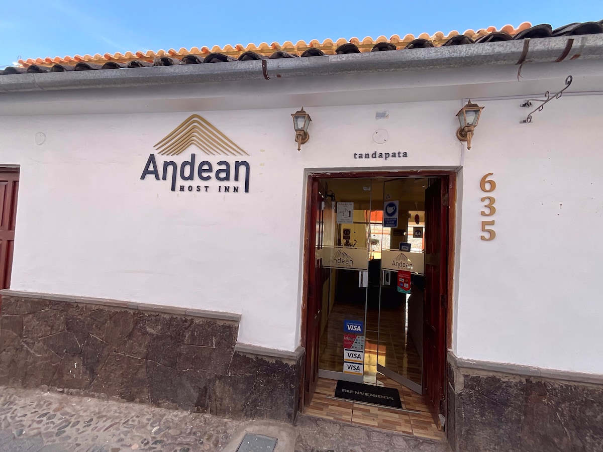 Hôtel moderne dans le centre historique avec une décoration typique de la région. Chambre confortable au TROISIÈME ÉTAGE, dispose d'une SALLE DE BAIN PRIVÉE moderne DANS LA CHAMBRE, eau chaude 24 h/24, télévision intelligente, Internet haut débit (300 Mb). Grand espace pour travailler, chauffage. Nous sommes à 2 pâtés de maisons du Korycancha (temple inca du soleil) et à 8 minutes à pied de la place principale du centre historique de Cuzco. Consigne à bagages gratuite avant et après votre séjour. Le petit déjeuner N'EST PAS inclus.