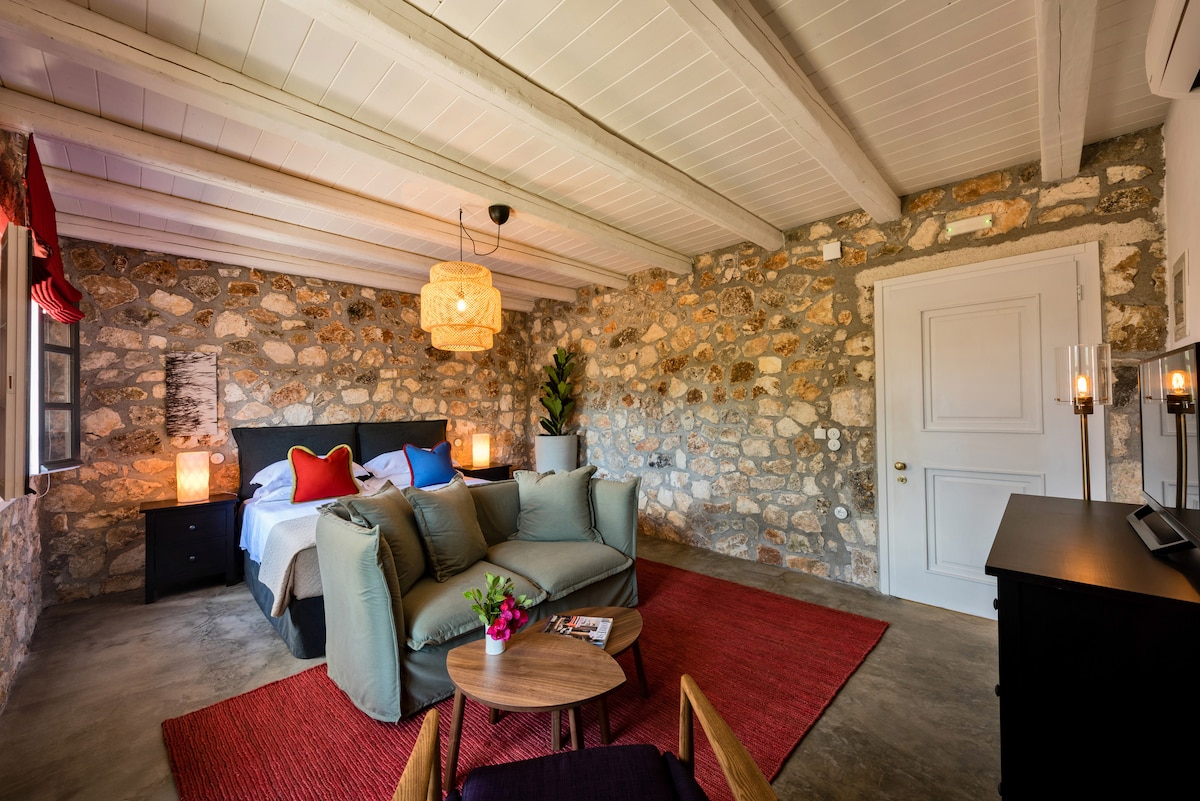 The lux studios overlook the coastal road of Argostoli and a pedestrian road to the main square. The lux studios have been meticulously styled to modern tones and are newly furnished all areas have been designed to offer comfort relaxation and modern amenities leaving you with the best memories of your vacation in Kefalonia