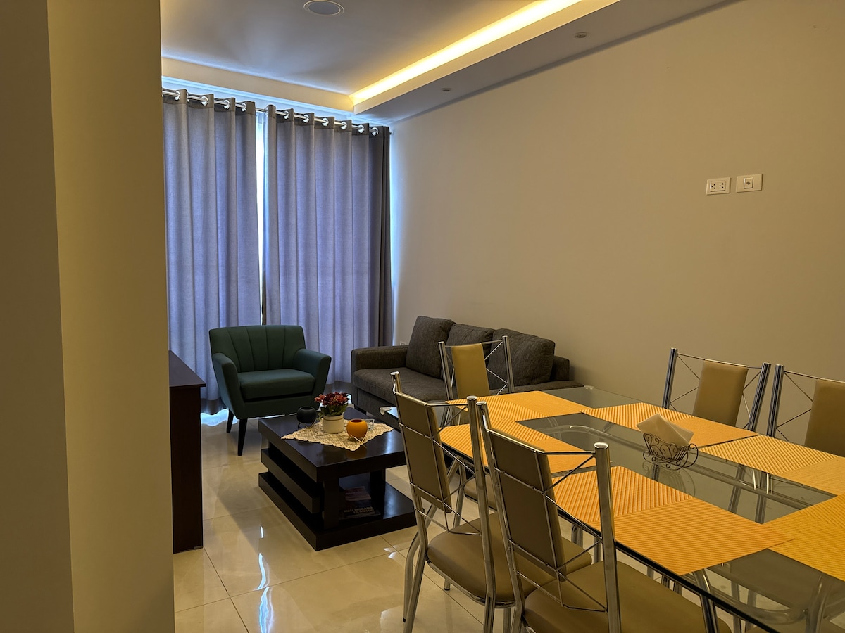 Appartement exclusif d'une chambre, idéal pour les couples, les voyageurs d'affaires ou ceux qui recherchent le confort. Situé dans l'un des quartiers les plus exclusifs et les plus sûrs de la ville, vous serez à quelques pas des cafés, des restaurants, des supermarchés et des centres commerciaux. Avec une chambre spacieuse avec un lit king size. Cuisine entièrement équipée avec réfrigérateur, micro-ondes, cuisine, lave-linge. Salon confortable avec canapé-lit et Smart TV. Piscine sur le toit avec vue panoramique sur la ville. Espace barbecue à côté de la piscine70380815