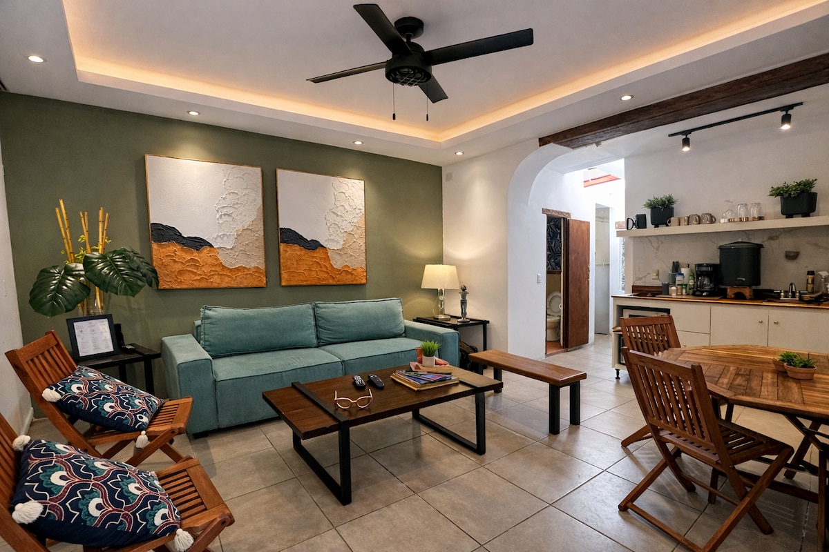 Profitez de notre loft confortable situé dans le centre d'Antigua, à seulement 60 mètres du parc central. Il a la meilleure position en ville, découvrez le meilleur d'Antigua avec confort et style à portée de main. L'espace bien conçu comprend une cuisine - salle à manger, un salon et une buanderie au premier niveau, avec une chambre calme et une salle de bain moderne dans la mezzanine. Le loft dispose d'une connexion Wi-Fi de 250 Mo. Nous offrons un parking gratuit dans un parking privé à 7 pâtés de maisons du loft.