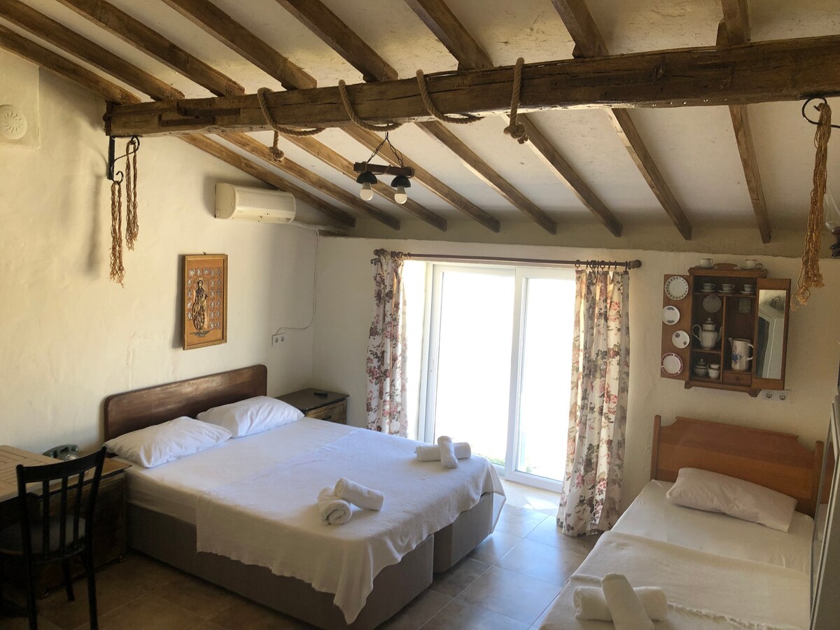 Une maison d'été propre, bien entretenue, paisible et agréable dans la plus belle baie de Paşalimanı, à 2 minutes à pied de la mer. Entièrement meublé. Vue complète sur la mer disponible sur la terrasse avec coin salon. C'est idéal pour un verre agréable. Le coin salon ci-dessous a également des senteurs de pin. Pour l'automne et l'hiver, Şifne est à 5 min en voiture de la station thermale. Un chauffage électrique et des couvertures sont disponibles dans la maison.