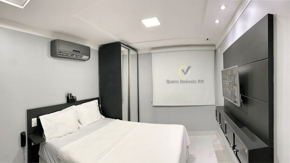 Appartement de 3 chambres étant une suite, équipé de la climatisation partagée, lits queen size, grandes armoires, 2 salles de bain, grand salon intégré à la cuisine avec une belle vue sur la mer. Préparez votre repas en regardant la belle Ponta Negra, reposez-vous dans une balançoire sur le balcon, sous les étoiles ! Tranquillité d'esprit à proximité des bars, restaurants, banques, cinéma et magasins. Marzão devant pour nager et prendre de l'énergie. Cordialement ! !