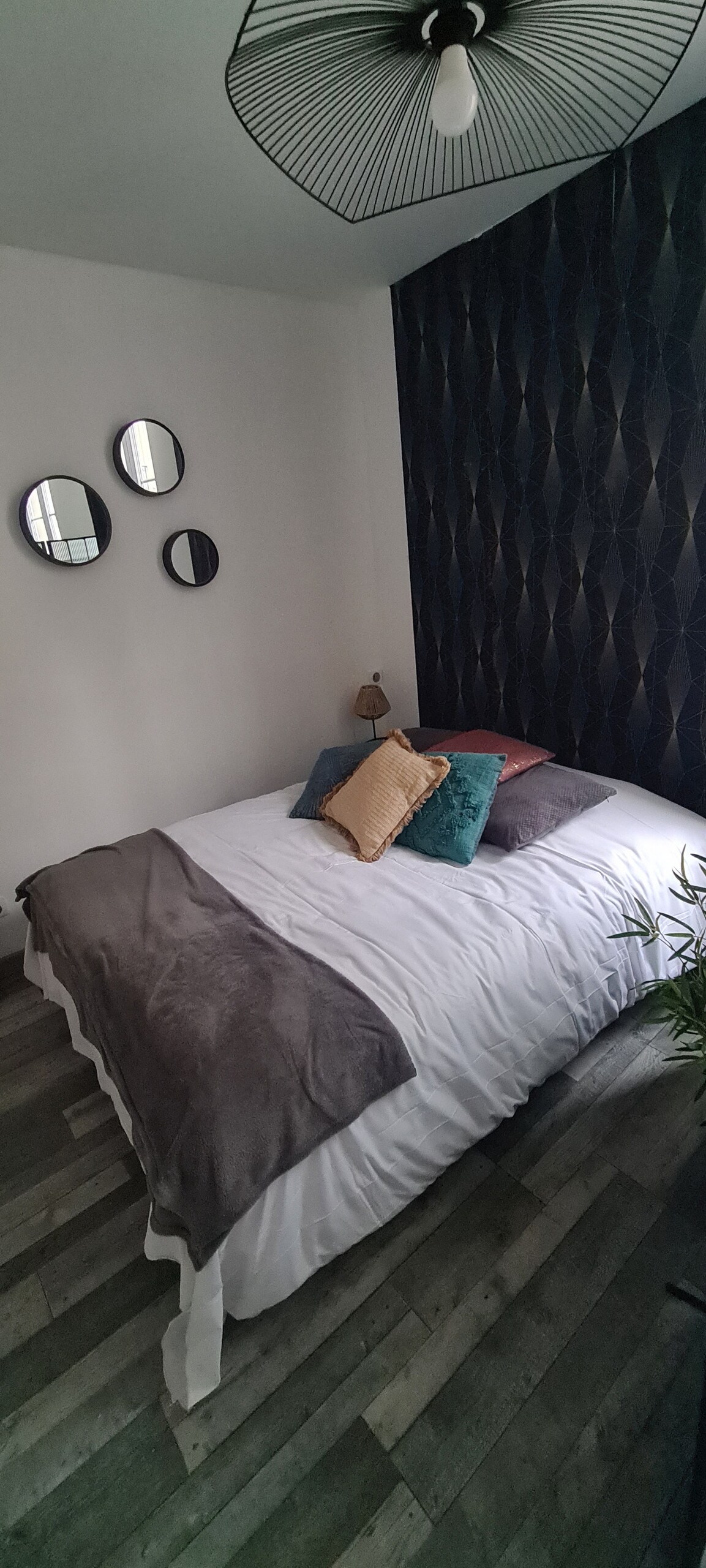 En plein cœur du centre ville avec ses commerces et à moins de 100m de l'office de tourisme. Logement en fond de cour dans une résidence privée et sécurisée par badge avec son entrée indépendante, sa terrasse et sa place de parking privée. Pour une nuit ou un long séjour, vous disposez d'une chambre avec lit 160×200 ( linge de lit fourni),WC séparé, salle de douche avec serviettes de bain et lave linge, cuisine équipée avec plaque induction, four, micro ondes, frigo et congélateur.