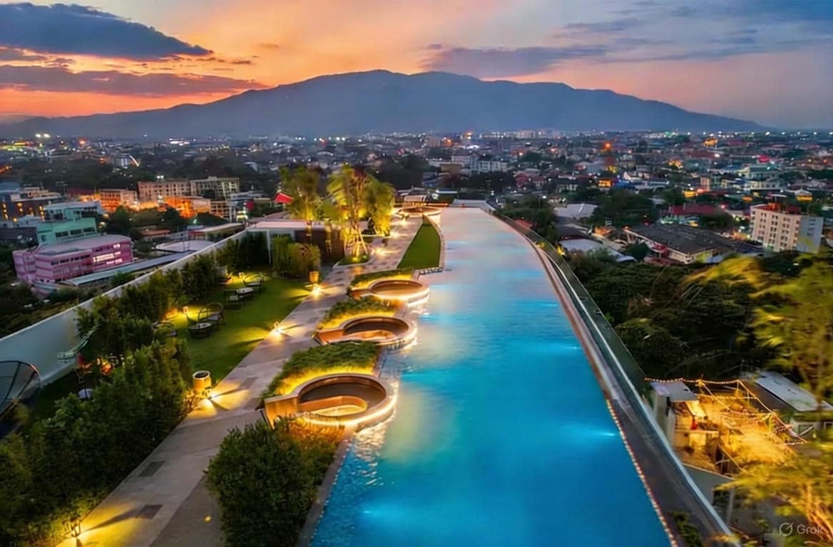 该房源位于清迈繁华的黄金商业地段长康路,是清迈唯一附带空中庭院的公寓,顶楼拥有超长150米山景无边泳池,可以欣赏清迈的日出和日落风景。 Astra sky river located on Changklan Road, which is the golden commercial area in Chiang Mai. The top floor has a super long 150 meter mountain view infinity pool, where you can enjoy the sunrise and sunset of Chiang Mai.